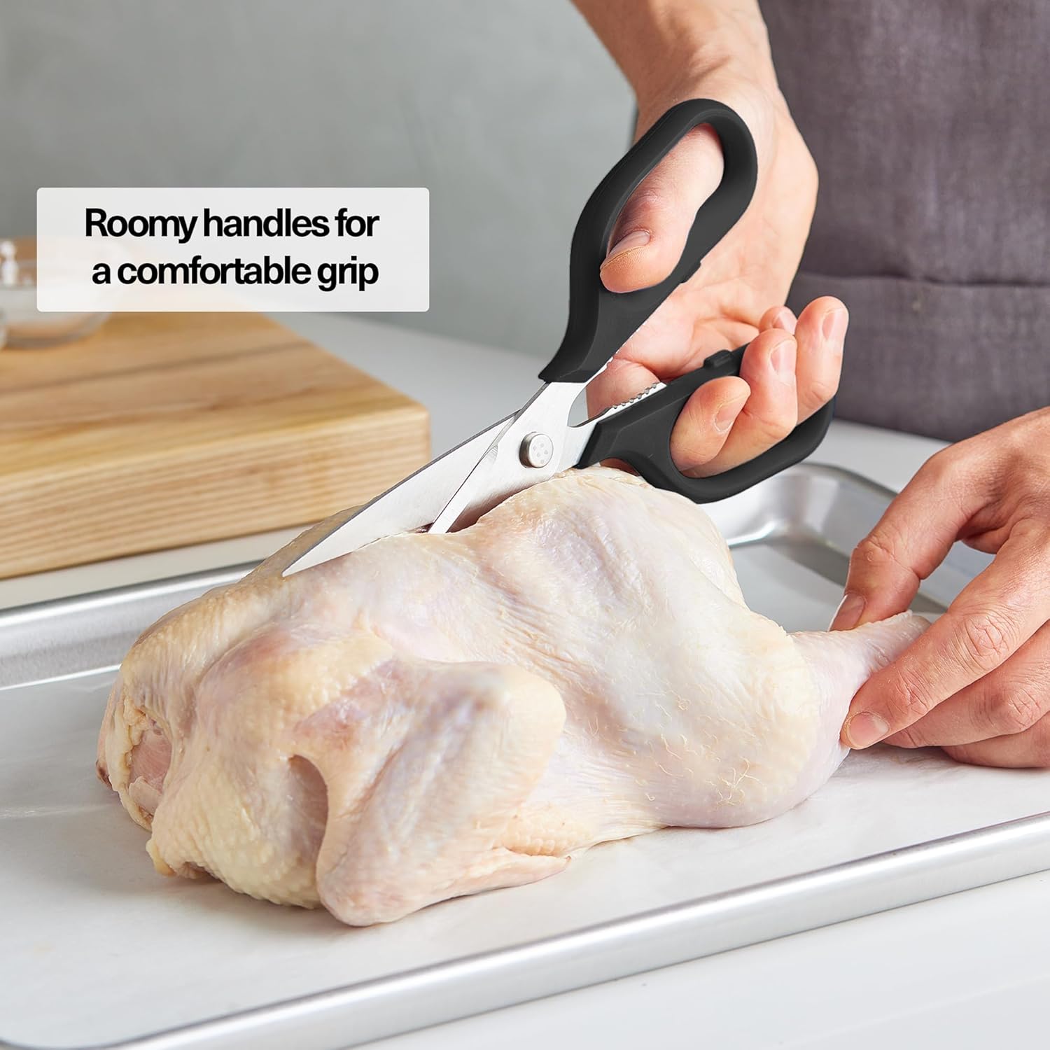 - Effortless Cleanup: The genius lies in the details. Our kitchen shears effortlessly come apart, allowing for meticulous cleaning, reaching every nook and cranny which helps elimiate cross contamination and other foodborn illnesses.