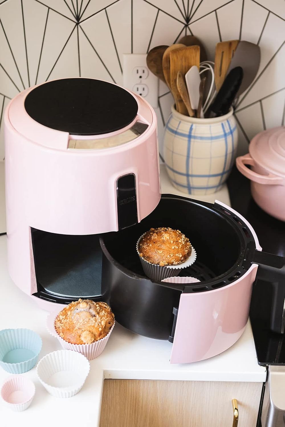 The Silicone Kitchen Reusable Silicone Baking Cups Silicone Muffin Liners for Cupcakes, BPA Free, Jumbo, 12 Pack, Pink Gray Blue
