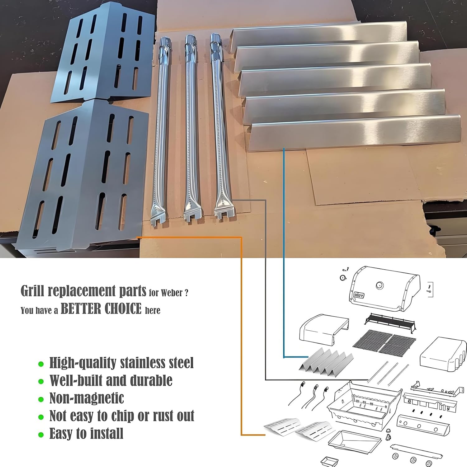 - 【HEAT EVENLY】The grill parts for Weber Genesis 300 series prevent food directly exposure to flame, have a good protection for your burner and make your food more evenly heated. Stainless Steel flavorizer bars create delicious barbecue flavor