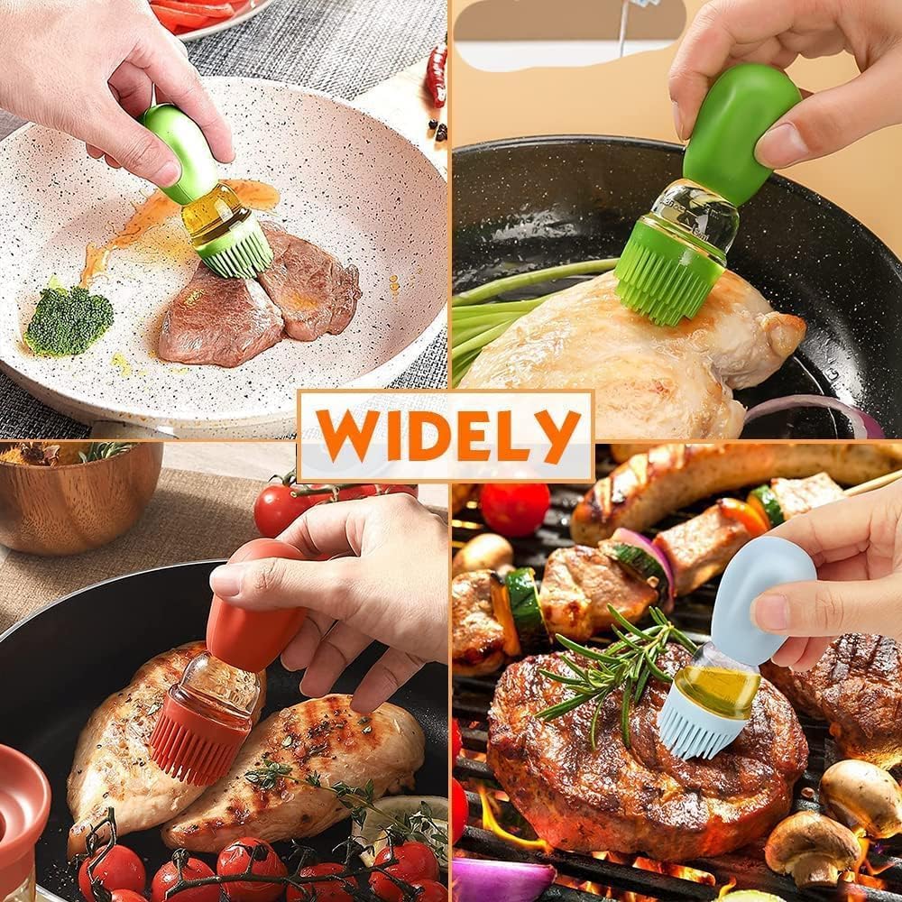 - Multi-Purpose: You can easily baste meat or fish with no fess of taking out oil frequently. The best oil-basting brush on the top of the oil bottle keeps you from dealing with messy drips. Works great on a variety of foods, including meats, pastries, veggies, Marinade with oil, honey, sauces, and so on! Coat quickly on your food and less soaking in the brush.