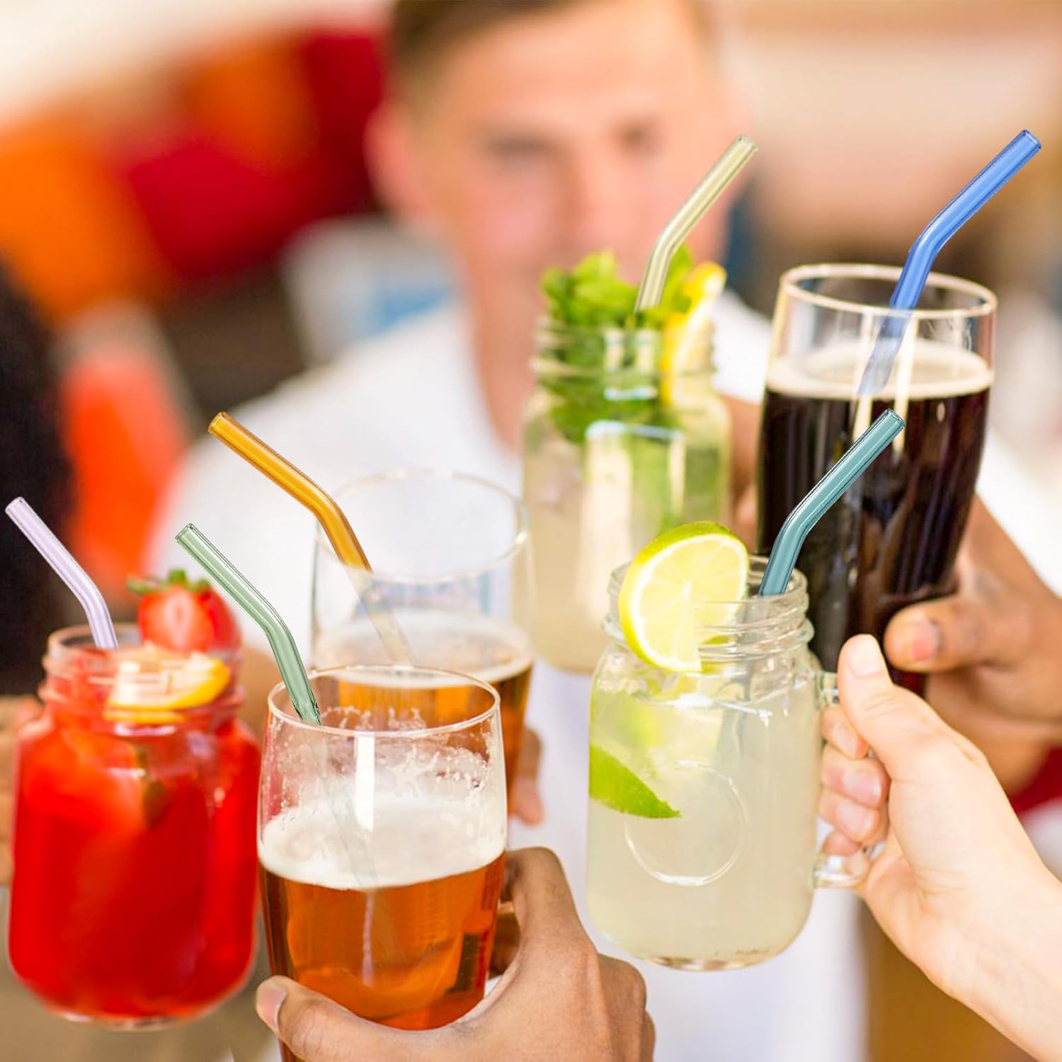 - The 9 inch reusable bent glass drinking straws will make your drinkings more colorful,attract your guests on the party.