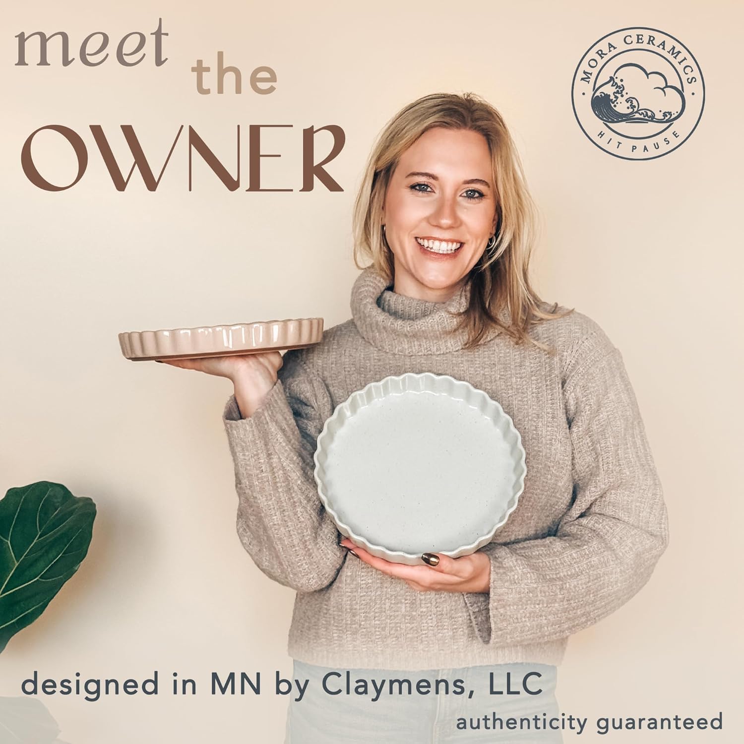 Mora Ceramic Tart Pan, 9.5 Inch Large Porcelain Baking Dish for Tarts, Quiche, Pie, Flan etc. Fluted Ruffled Edge, Oven, Microwave, Freezer, and Dishwasher safe - Great Gift For Bakers - Earl Grey