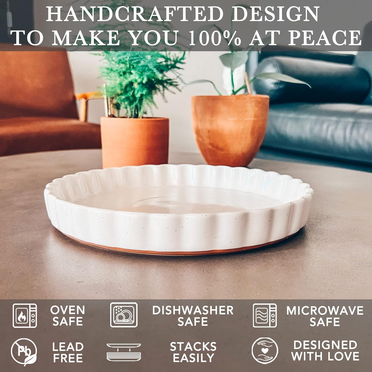 - CRYSTALLIZED GLAZE: Our glaze is lead free, cadmium free, and extra strong to prevent scratches from your metal utensils. Only we produce a crystallized glossy glaze that is strong enough to resist scratches under 1000 grams of pressure. Our smooth glaze allows for easy cleanup, and as always our products are microwave, oven, freezer, and dishwasher safe.