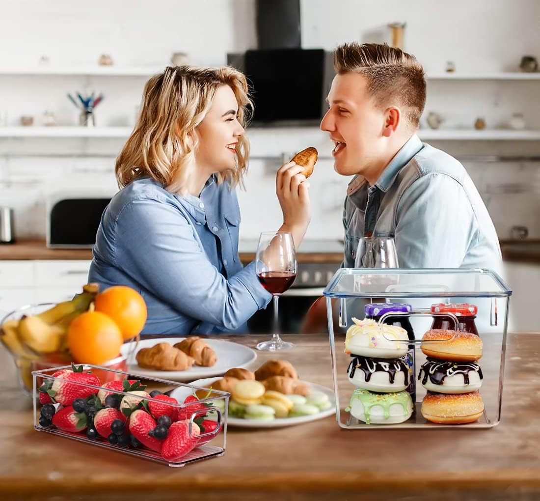 - 【Transparent without lids】 - The plastic transparent design bins allows you to find what you need easily and quickly, saving a lot of searching time and keeping things tidy. These clear fridge storage bins can be used in refrigerators, cabinets, pantries, bathrooms, bedrooms, offices, drawers, playrooms, kitchens and vanities, etc.