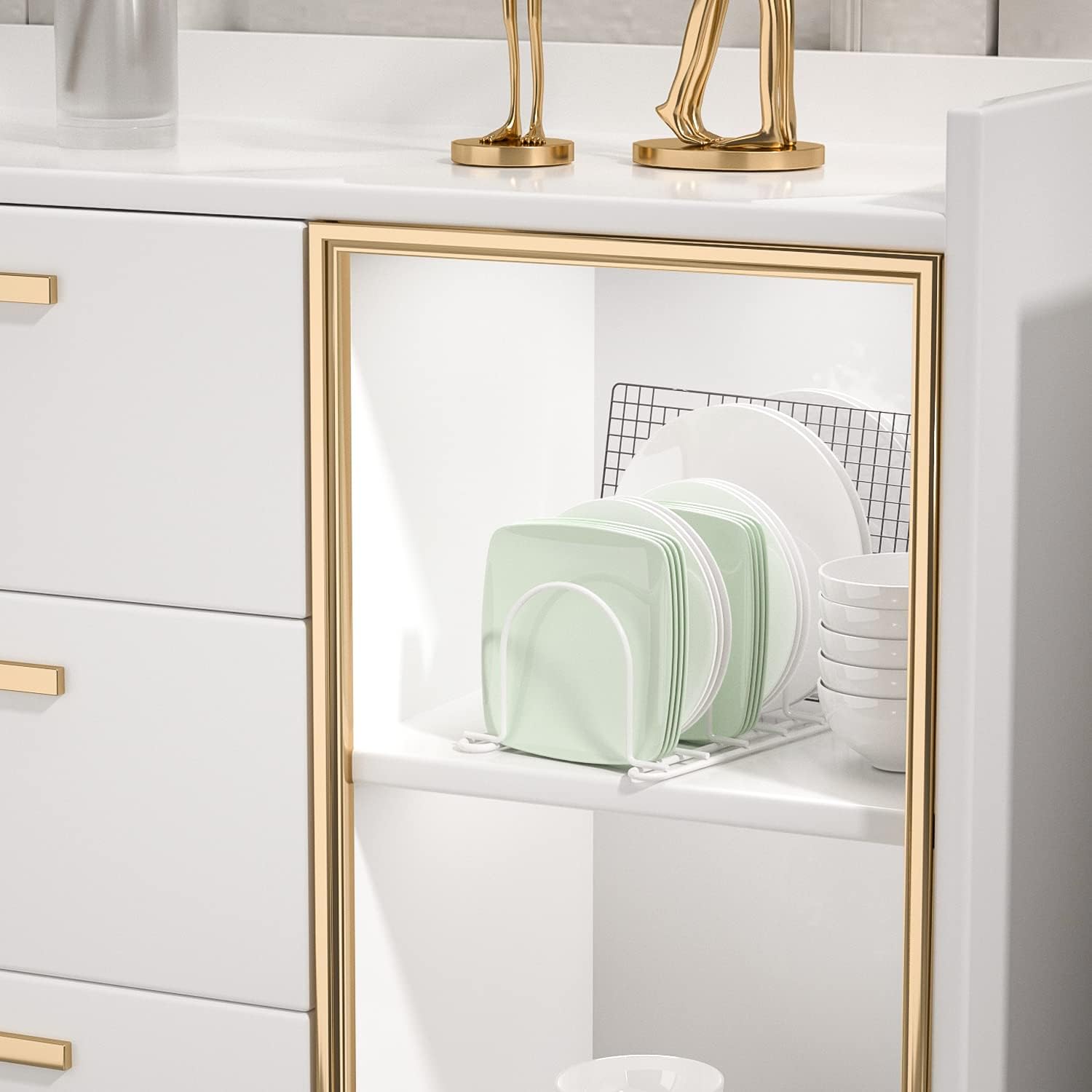 - √ 【Widely used in any places 】You can use the cookware rack in cabinet, stove drawer, shelf , countertop ,office table etc