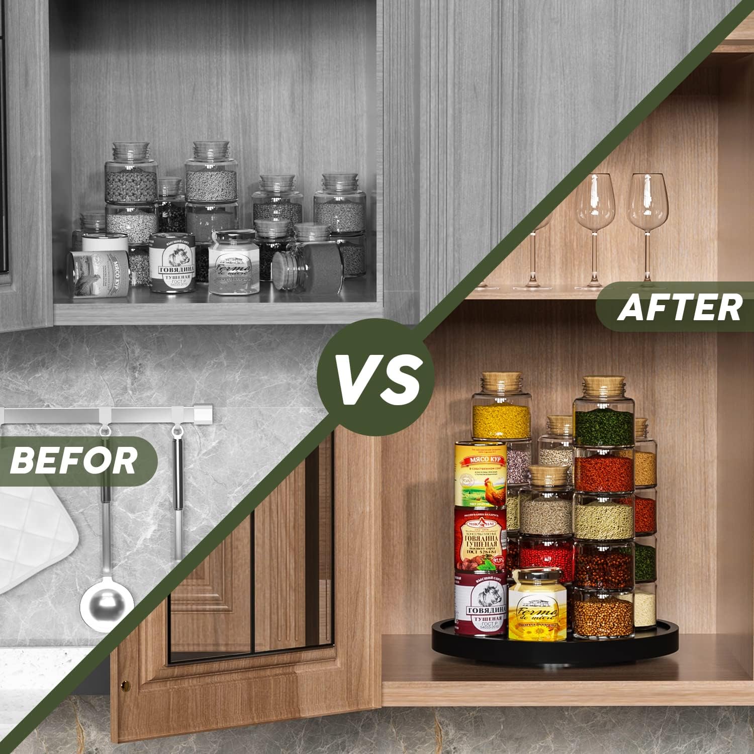 - Cooking assistant: lazy susan organizer perfect for organizing salt, vinegar, pepper, olive oil close to stove and easily reached; Center piece for table to hold napkin holder, honey, cinnamon, sugar and a vase; Helps keep table nice and organized