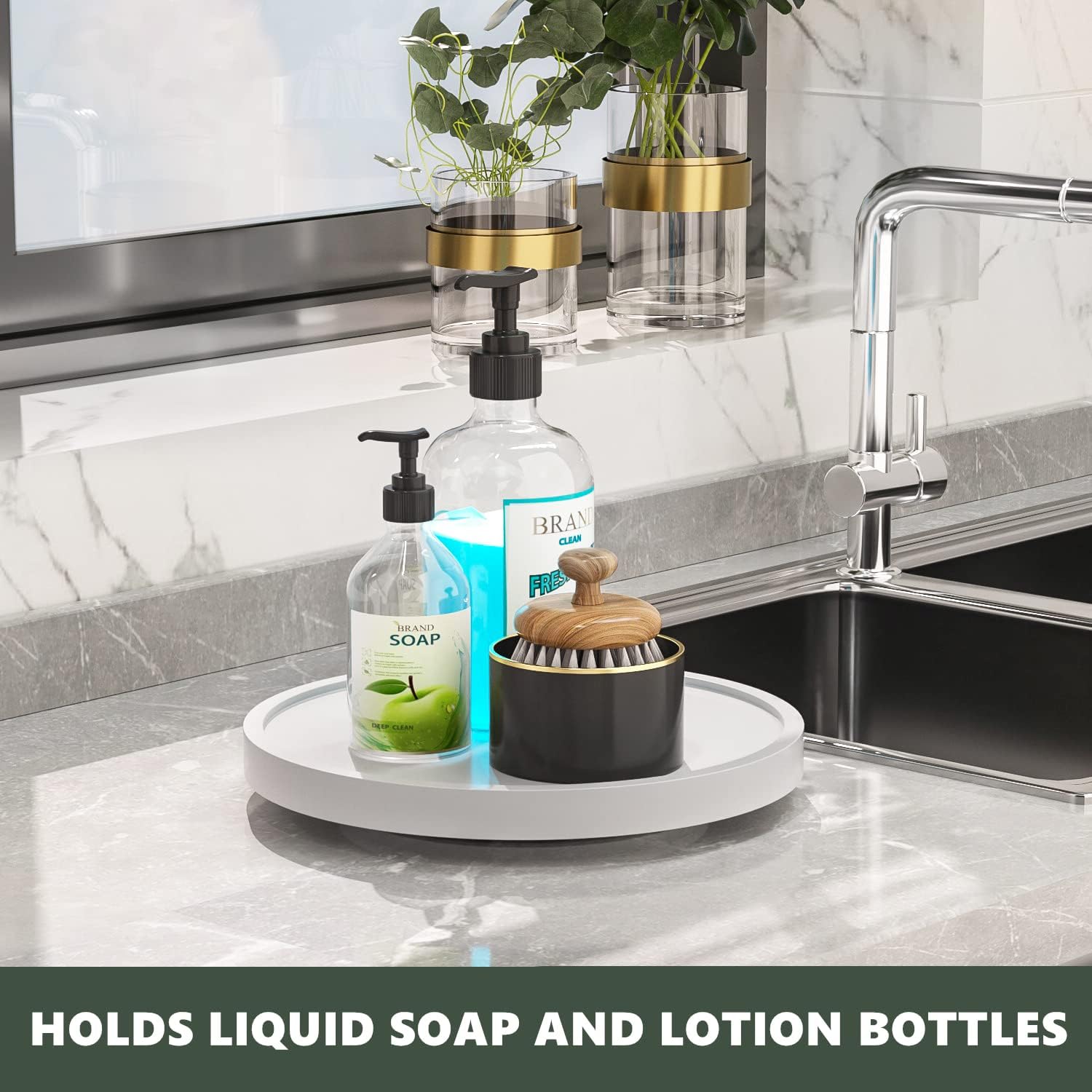 - Multi-functions: Vanity tray to hold jewelry, perfume, cosmetics; bathroom tray holds liquid soap dispenser and lotion bottles, toothpaste cup; hold soap bottles and sponge by kitchen sink