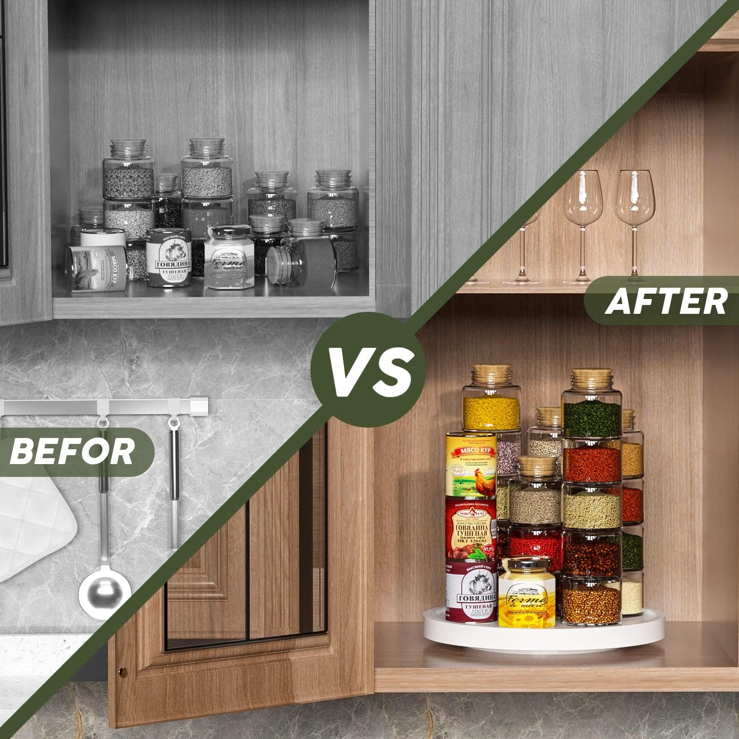 - Cooking assistant: lazy susan organizer perfect for organizing salt, vinegar, pepper, olive oil close to stove and easily reached; Center piece for table to hold napkin holder, honey, cinnamon, sugar and a vase; Helps keep table nice and organized