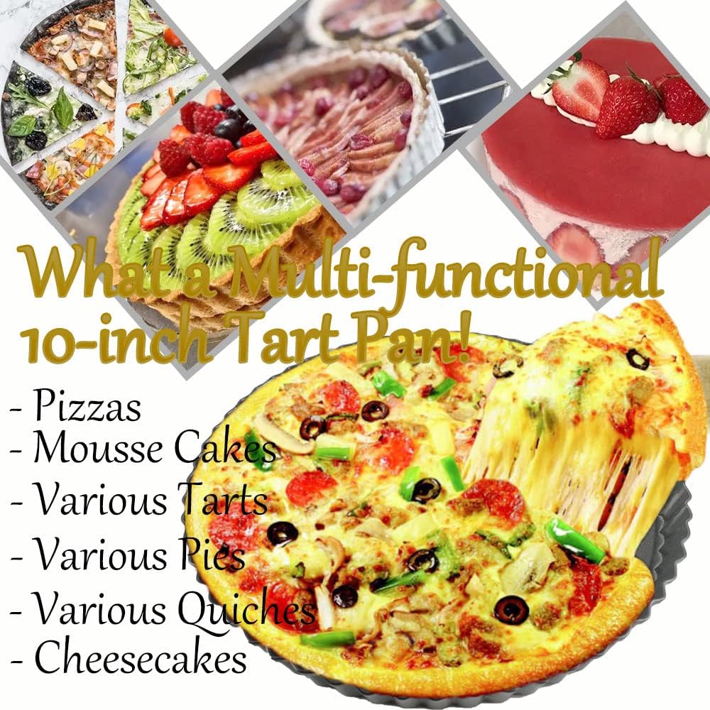 - 【Removable Bottom for Effortless Demolding】 - Featuring a convenient removable false bottom, this 10 inch tart pan with removable bottom allows you to easily release tarts without damaging their shape. The thoughtful design is perfect for cooling, decorating, and serving desserts while maintaining their flawless appearance.