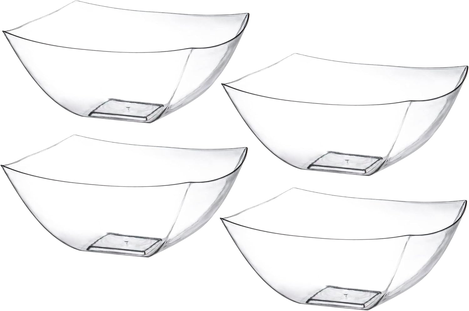 Posh Setting Clear Plastic Serving Bowls Disposable - Square Bowls - Square Candy Bowl - Plastic Snacks & Chip Bowls for Parties - Black, Gold & Clear, White Serving Dishes, 16 OZ, 4 Pack