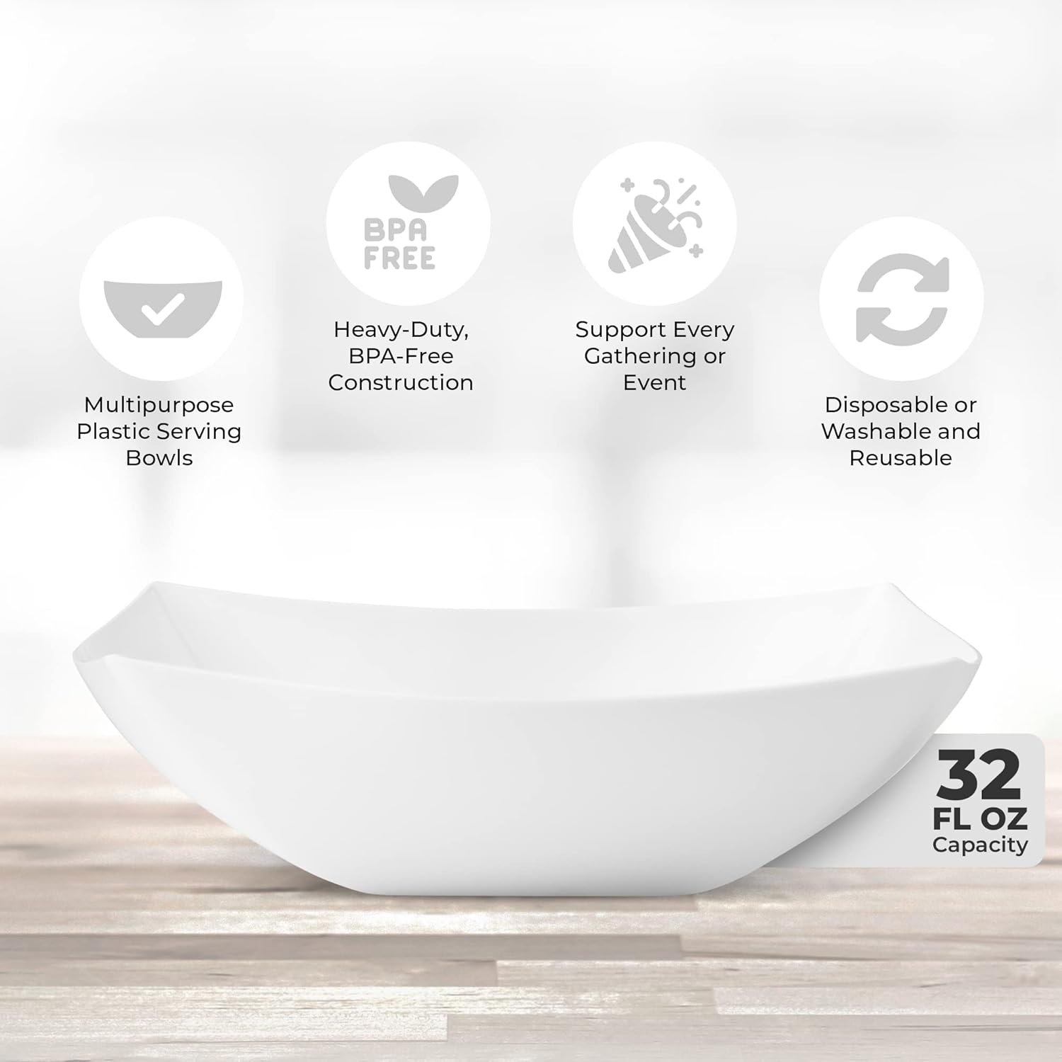 - MULTIPURPOSE USE: These 32 oz white plastic serving bowls are great for any occasion. Whether you're hosting a salad bar, serving snacks, candies, chips, or even using them for arts and crafts, these thanksgiving serving bowls meets all your needs. Enhance your party setup with these practical and stylish bowls that fit seamlessly into any event. Use them as candy dishes, chip bowls for parties, white plastic bowls, taco bar serving set for a party, and party bowls.