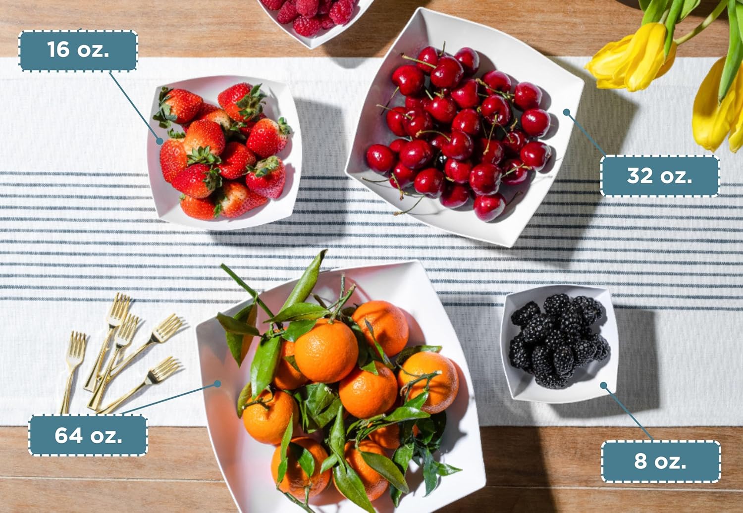 Posh Setting - White Plastic Serving Bowls for Party (32oz - 4 Pack) Square Bowls, Disposable Chip Bowls, Candy Bowls for Party Table, Salad & Fruit Bowls for Party, Candy Containers for Candy Buffet