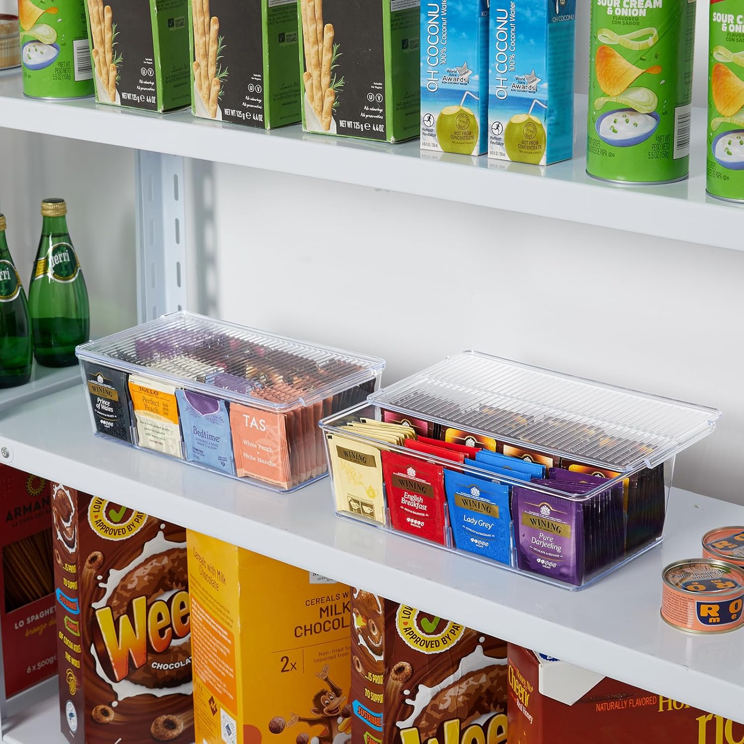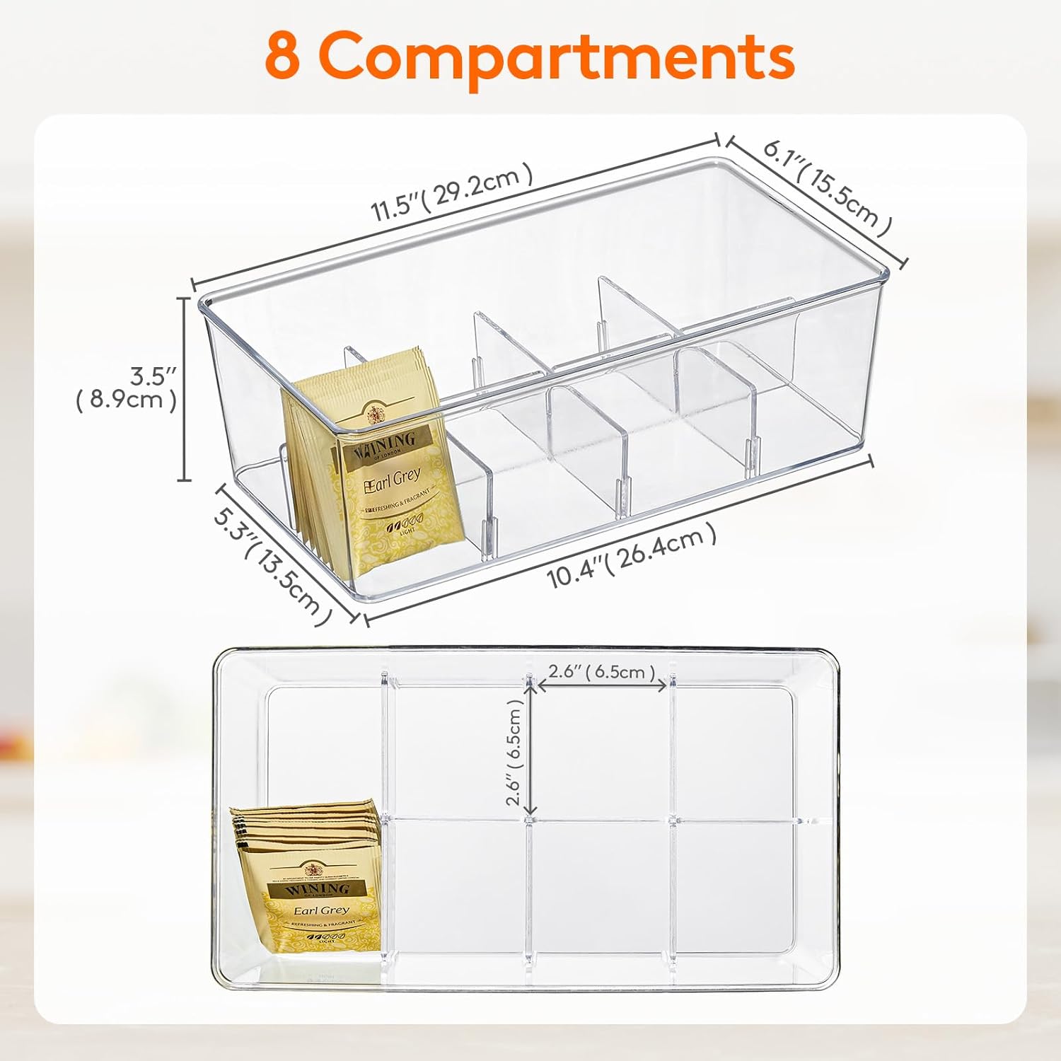 - Customized Storage: The tea organizer comes with 4 removable divided sheets in each tea bag storage box, when installing, place the long board first, and then place the short board. Allows you to customize the storage space.
