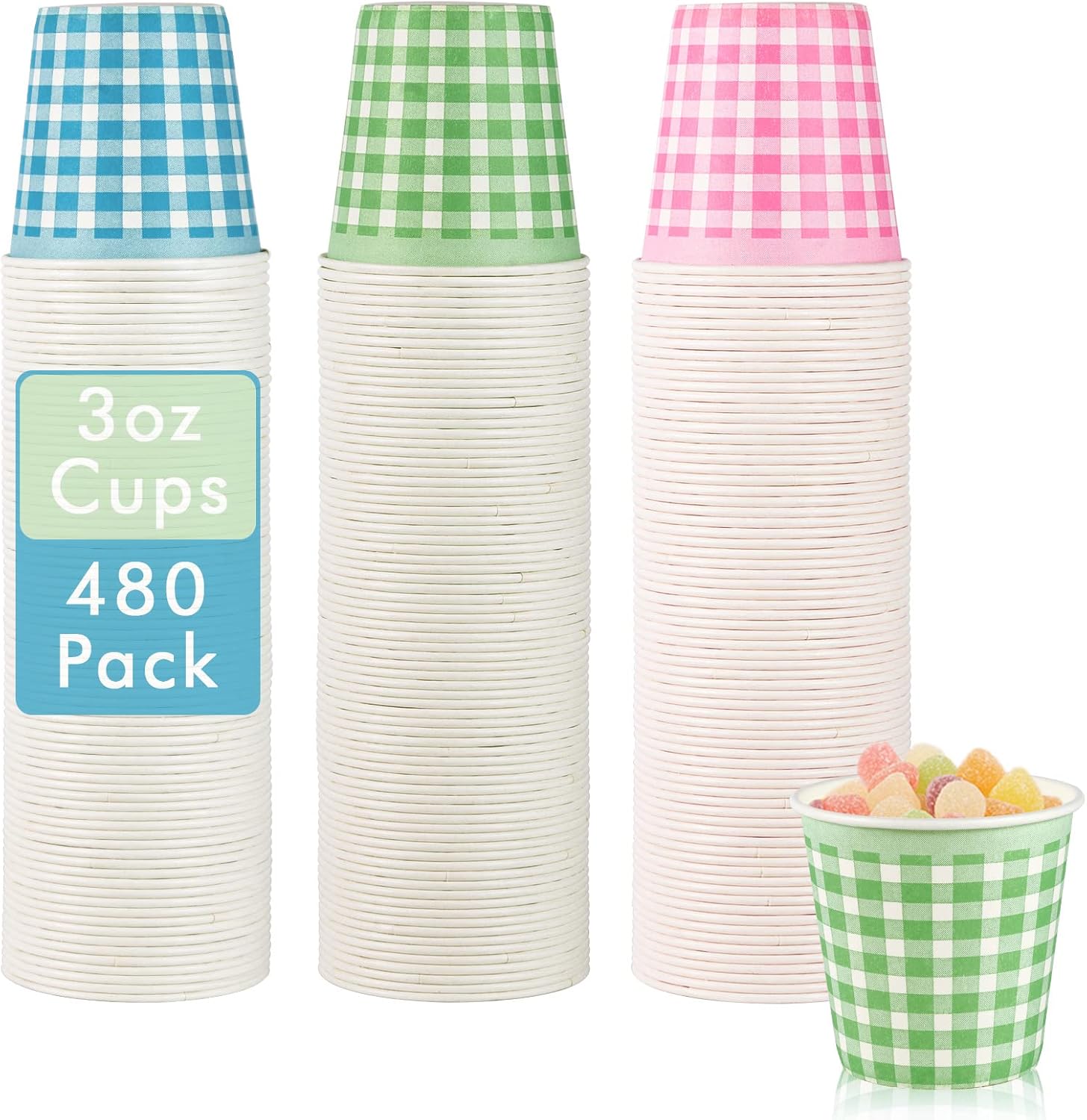 LITOPAK 480 Pack 3 oz Paper Cups, Colorful Disposable Bathroom Cups, Small Mouthwash Mugs for Home, Bathroom, Picnic, Party, and Events