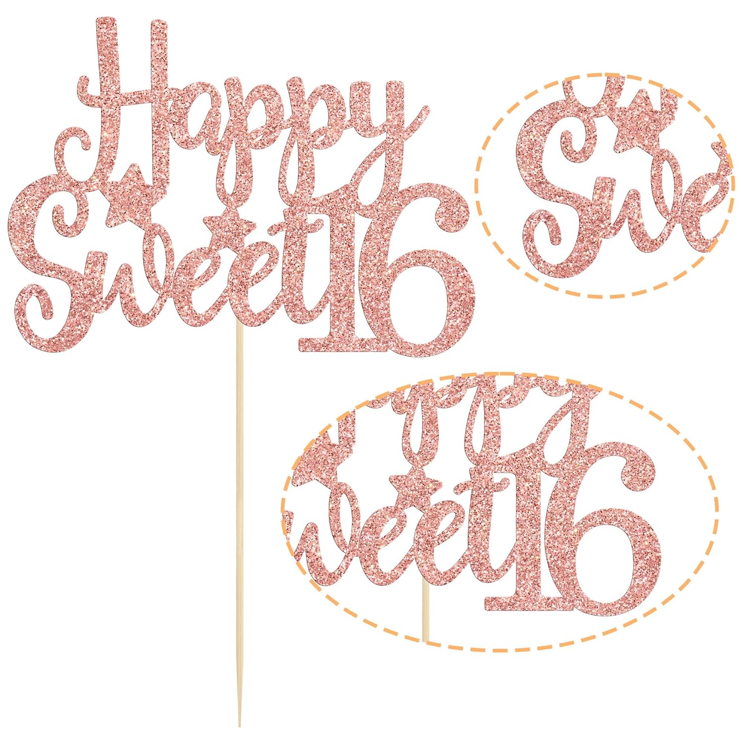 - 💕💕Premium Material: This Happy Sweet 16 Cake Topper is made of high quality 300 gram card stock and food-grade toothpick, very safe to put them on cakes, cupcakes, ice cream, fruits, pie, dessert, cheese or any dish and food appetizer you want to decorate fruit theme party decorations.