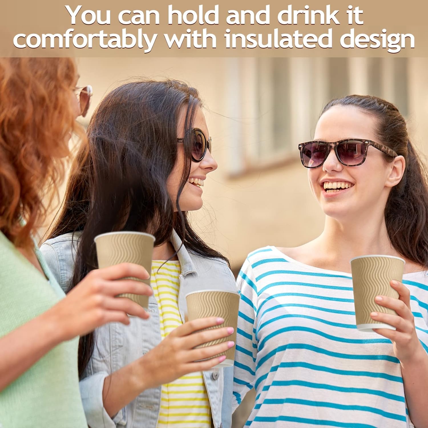 - Insulated Disposable Coffee Cups Design: disposable coffee cups 12 oz are elegant and minimalistic; The S shape pattern elevates the look of your home brewed coffee; With this sleeveless kraft paper hot cup, there is no need for waste of double cups or sleeves; The 3 layers rippled wall keeps the cup cool to the touch to ensure it does not get too hot on the outside, you can hold and drink it comfortably