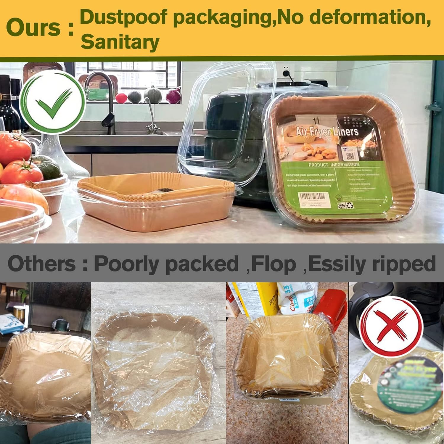 - Higher & Oil proof : Our large parchment paper liners is 1.8 inches high, 180% higher than the other airfryer liners on the market, which better protects the sides of the air fryer oven and prevents food from sticking to them. Our air fryer paper is oil and water resistant, preventing food residue and grease from seeping into the baking pan and racks, keeping the bottom and side clean and extending the life of the air fryer oven.