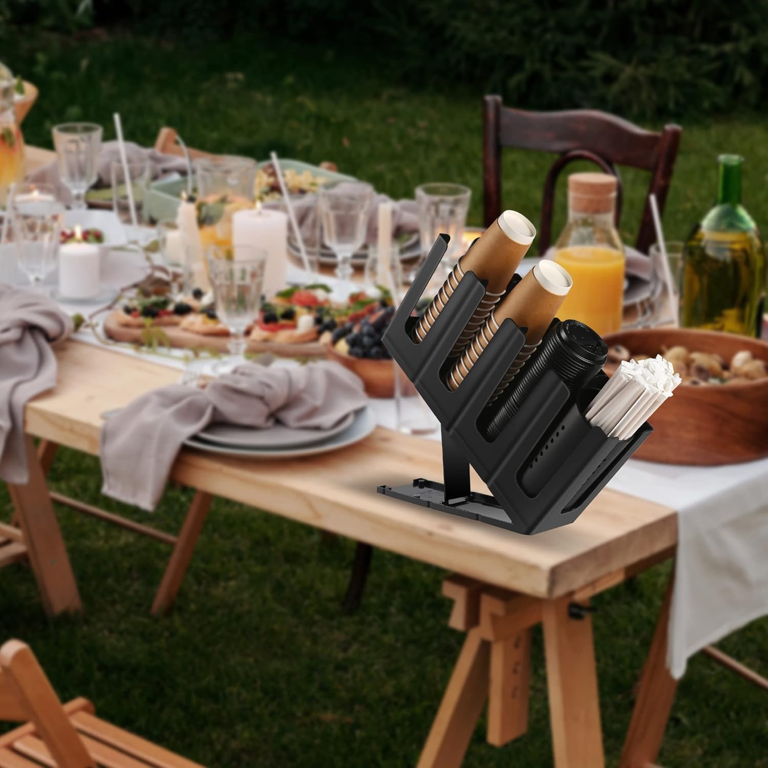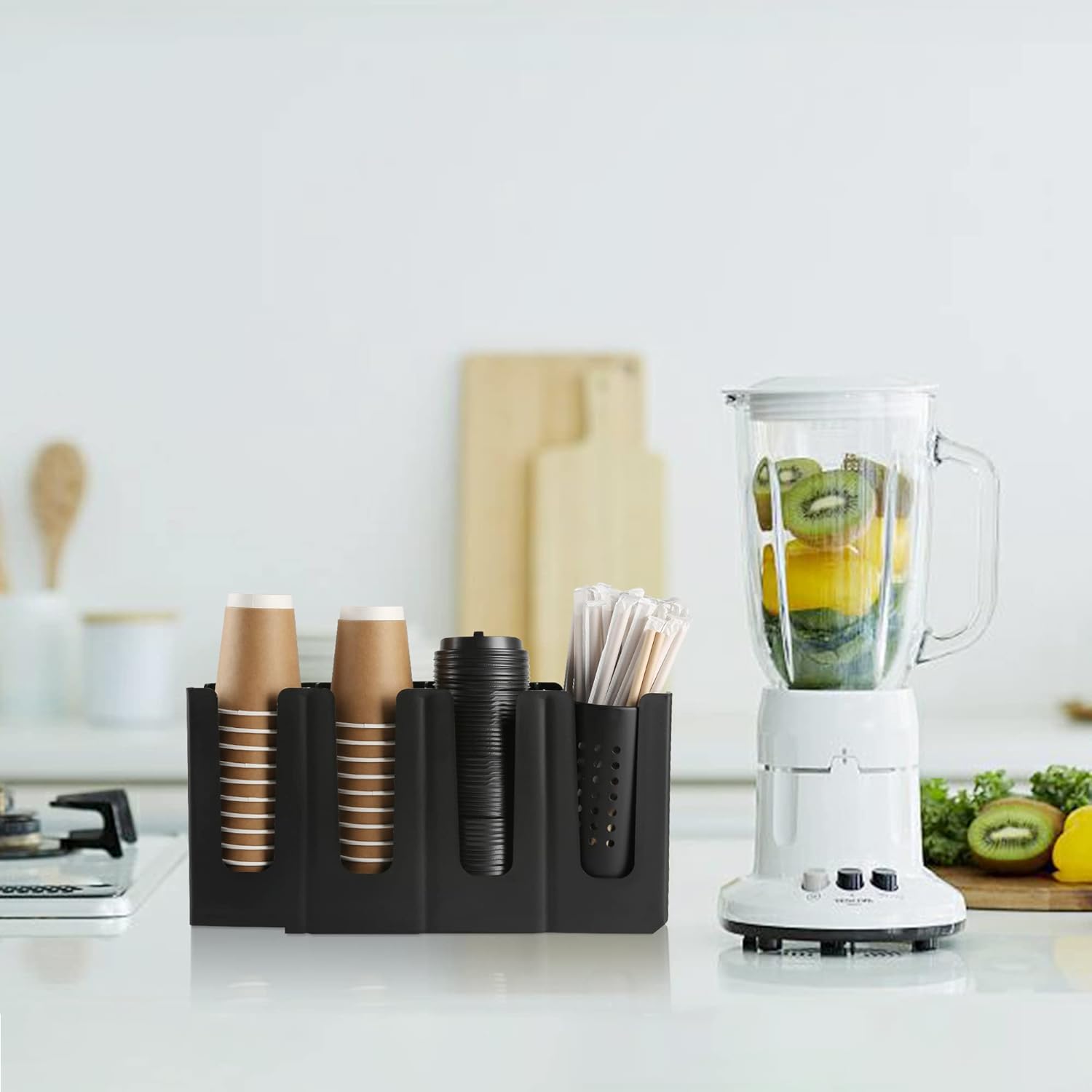 - Save Space: The coffee cup dispenser has 4 compartments and with a straw storage, you can put paper cups, plastic cups, lids, straws, etc., a good helper for coffee station.