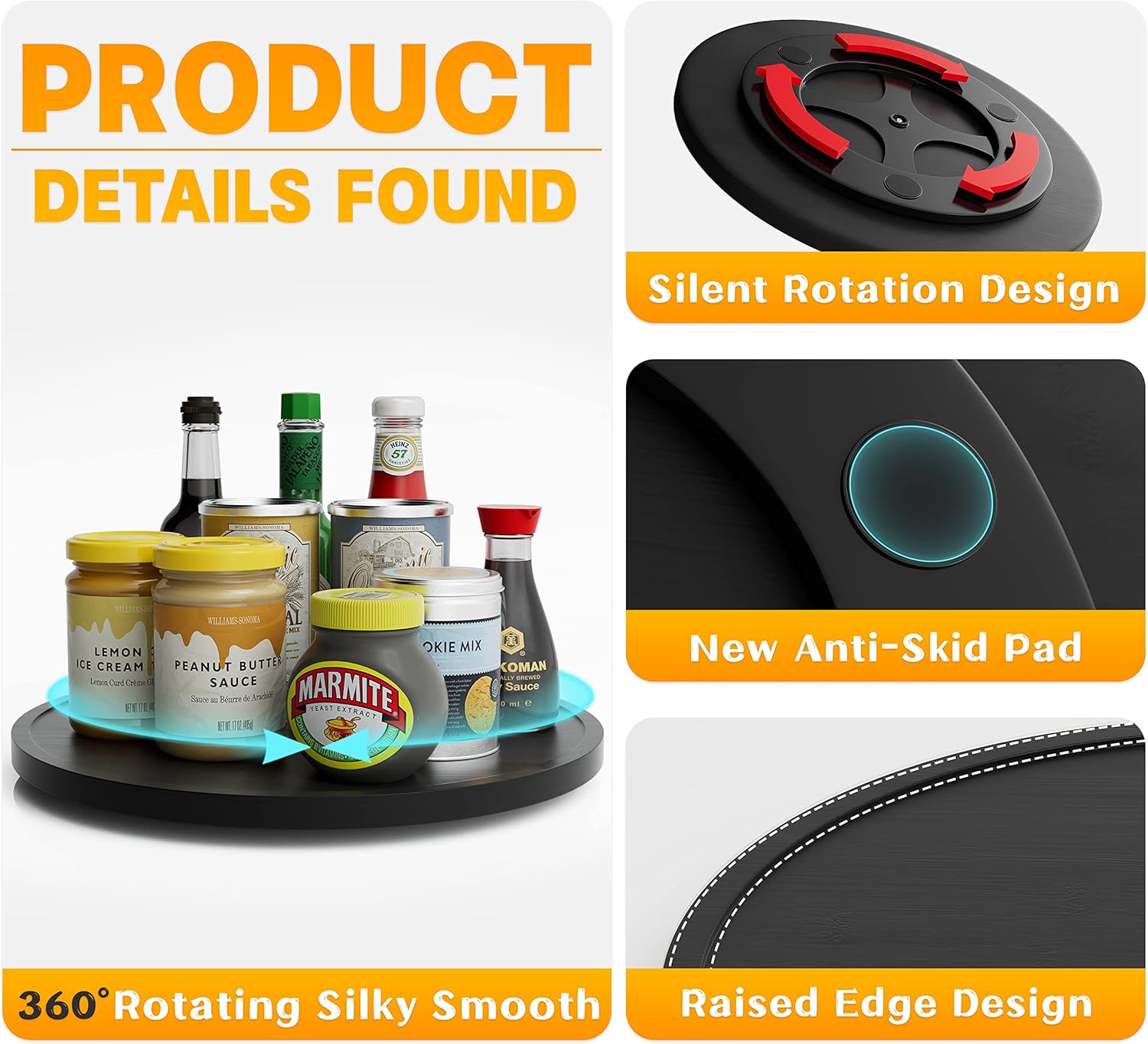 Lazy Susan Organizer Homerays 12 Inch Non-Skid Bamboo Lazy Susan for Kitchen Rotating Spice Rack for Kitchen Cabinet, Wood Turntable for Kitchen Countertop Organizer Black
