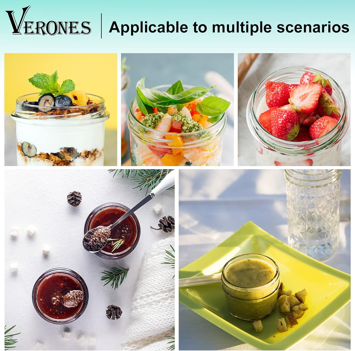 - HIGH QUALITY:Thick 4oz VERONES mason jars with food-safe, corrosion resistant lids - material is certified safety standards.