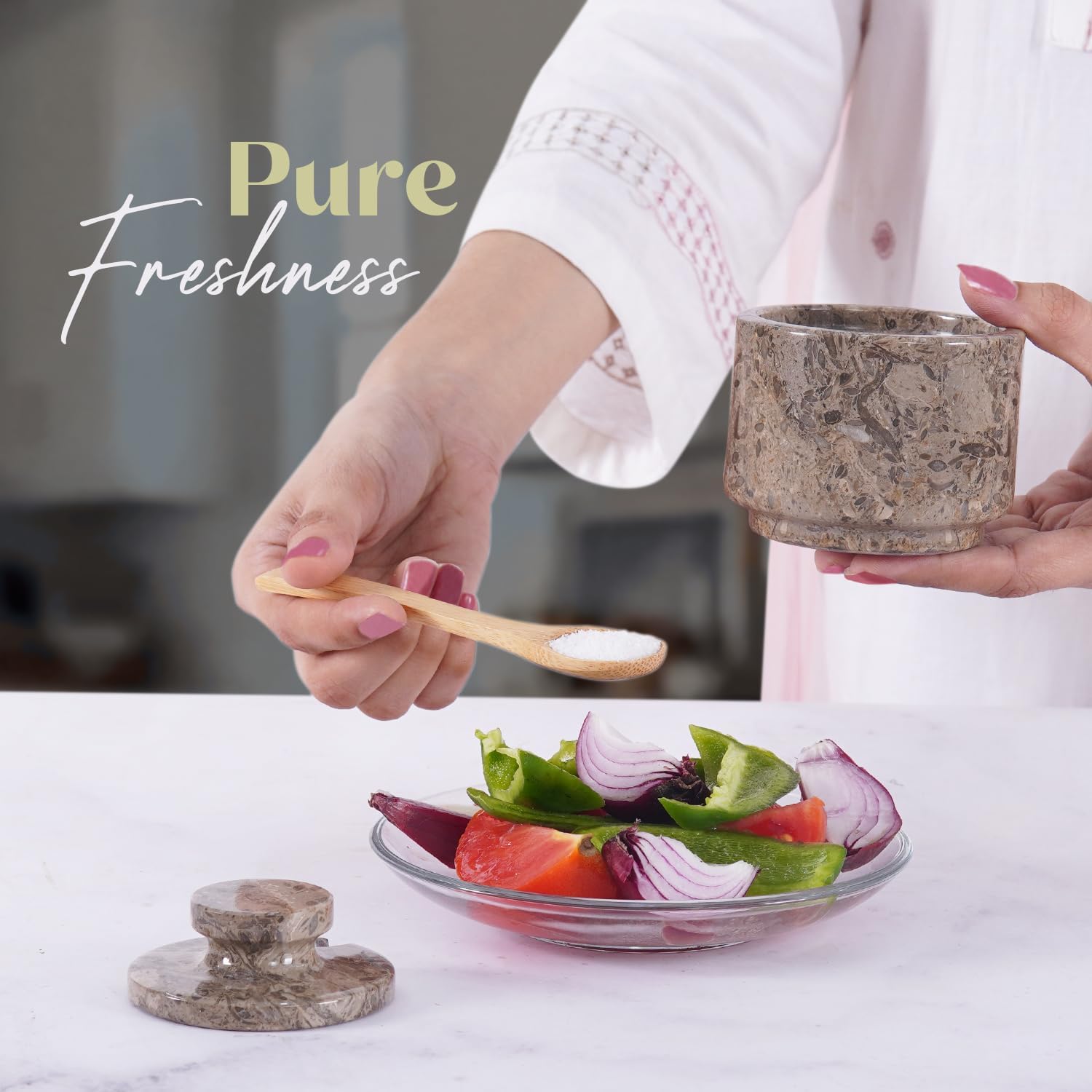 MARBLOUS KRAFTS Marble Salt Cellar with Lid 3" Inch Oceanic Salt Box, Seasoning Container & Spice Jars, Stone Salt Holder for Counter, Spice Jar