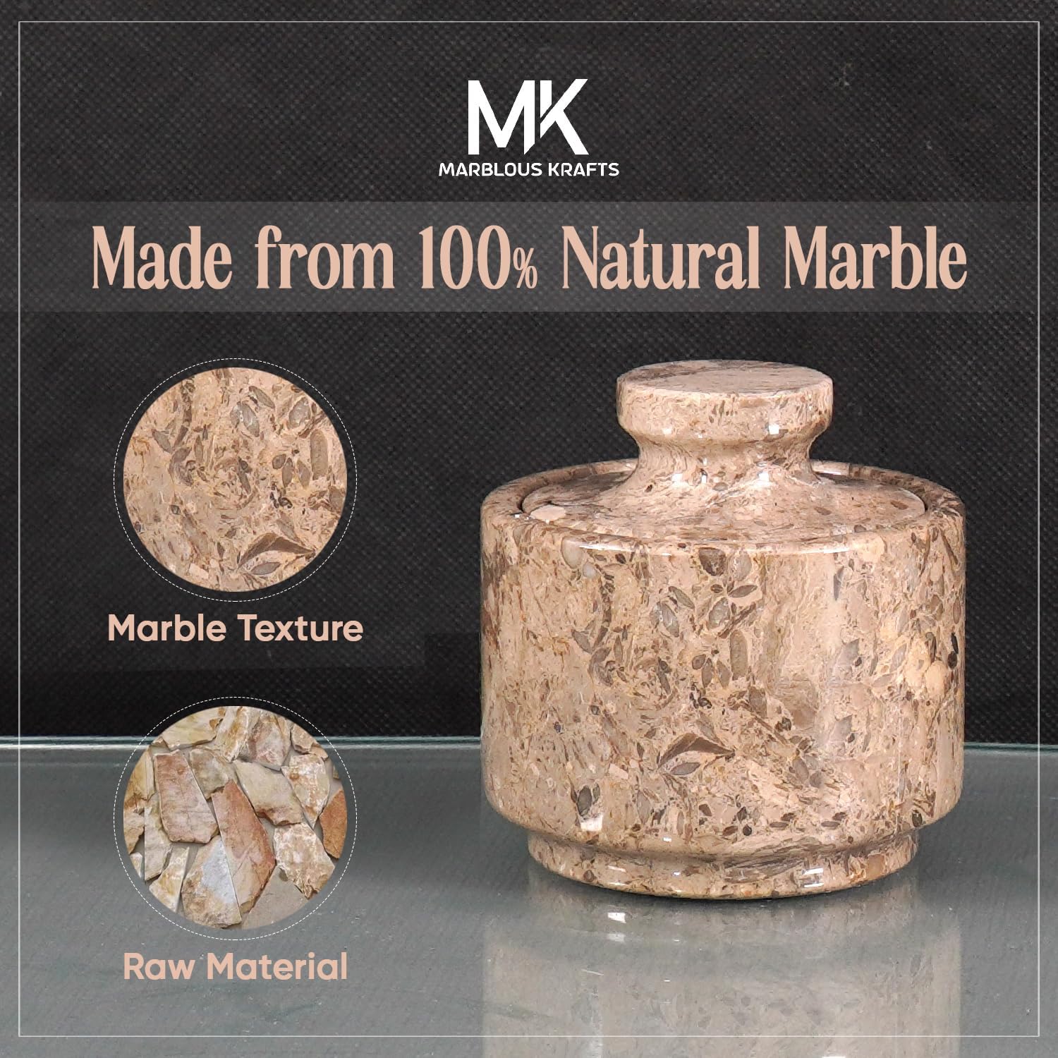 - WHAT IS INCLUDED- 1x Premium Marble Salt Cellar With Lid. Comes Along With securely packaged with Marblous Kraft branded packaging.