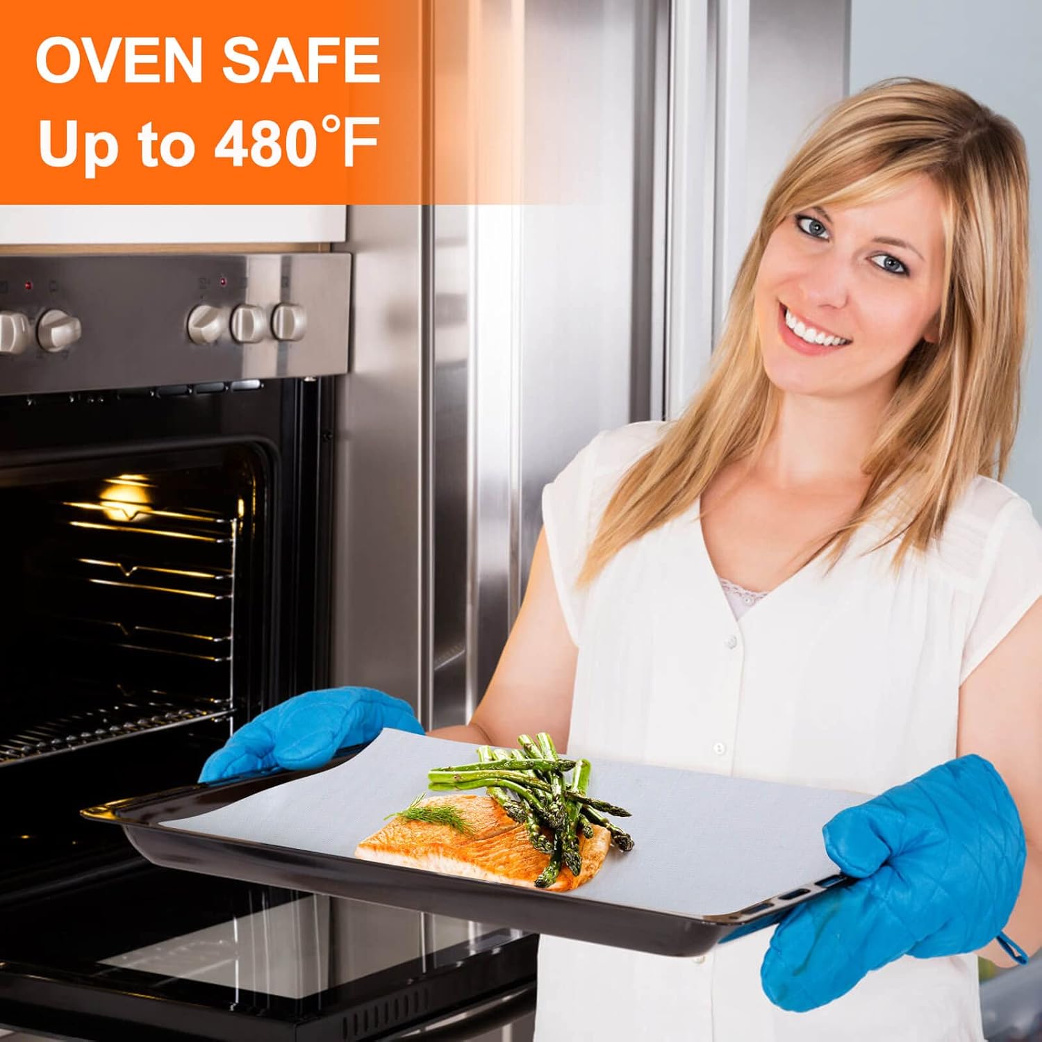 - 【REUSABLE, COST EFFECTIVE&EASY TO STORE】 Angadona Silicone Mat liner combines the characteristics of disposable parchment paper and silicone baking mats,can be reusable in hundreds times instead of the parchment paper roll,and very easy to store,just roll up or lay flat in the drawer. Save your money