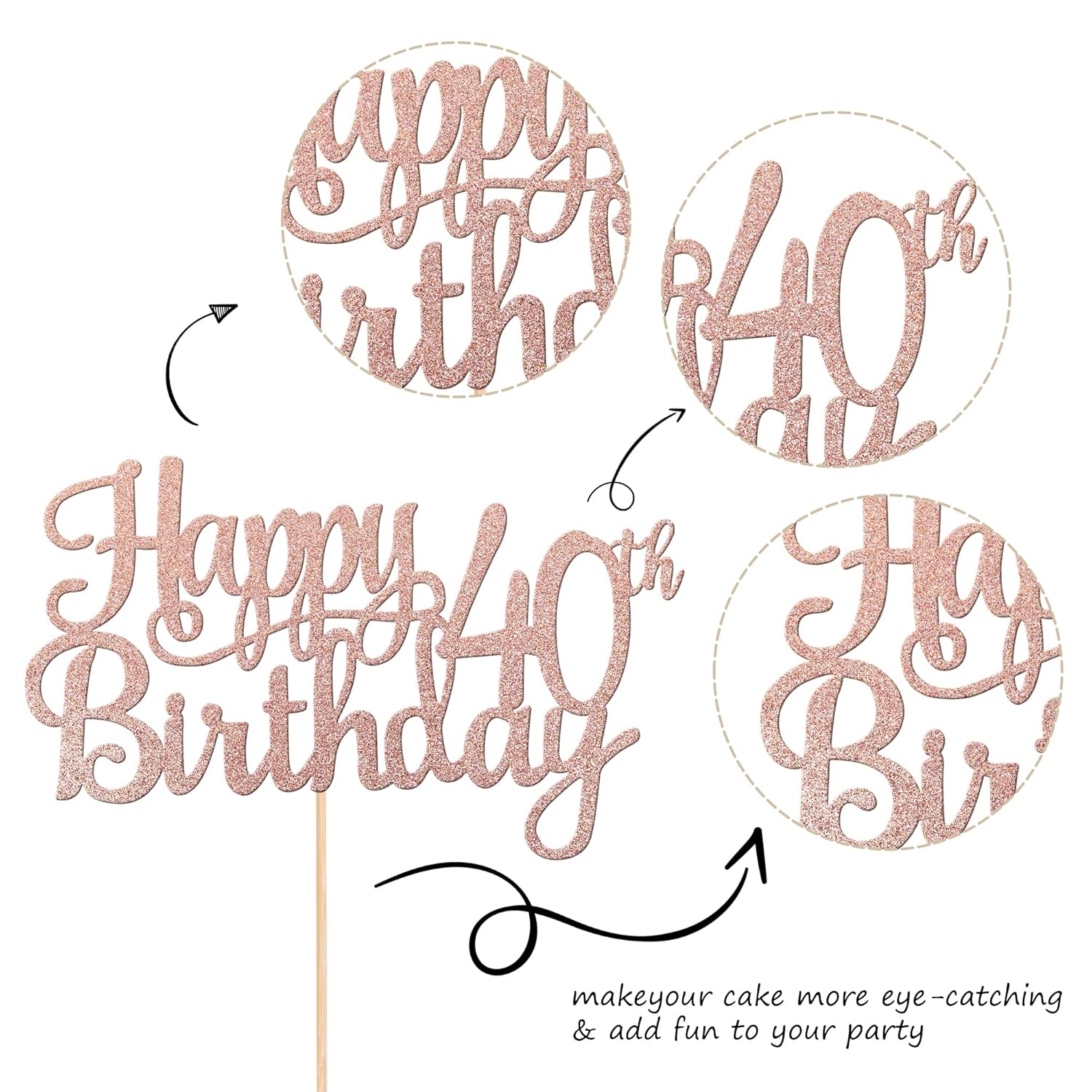 - Wide Usages ! The cake topper is perfect for happy 40th birthday theme party, cheers to 40 years birthday theme party cake decorations, they can make your cake more attractive and bring the fun to your party.You can also apply them for ice cream, fruits, cookies and other desserts.