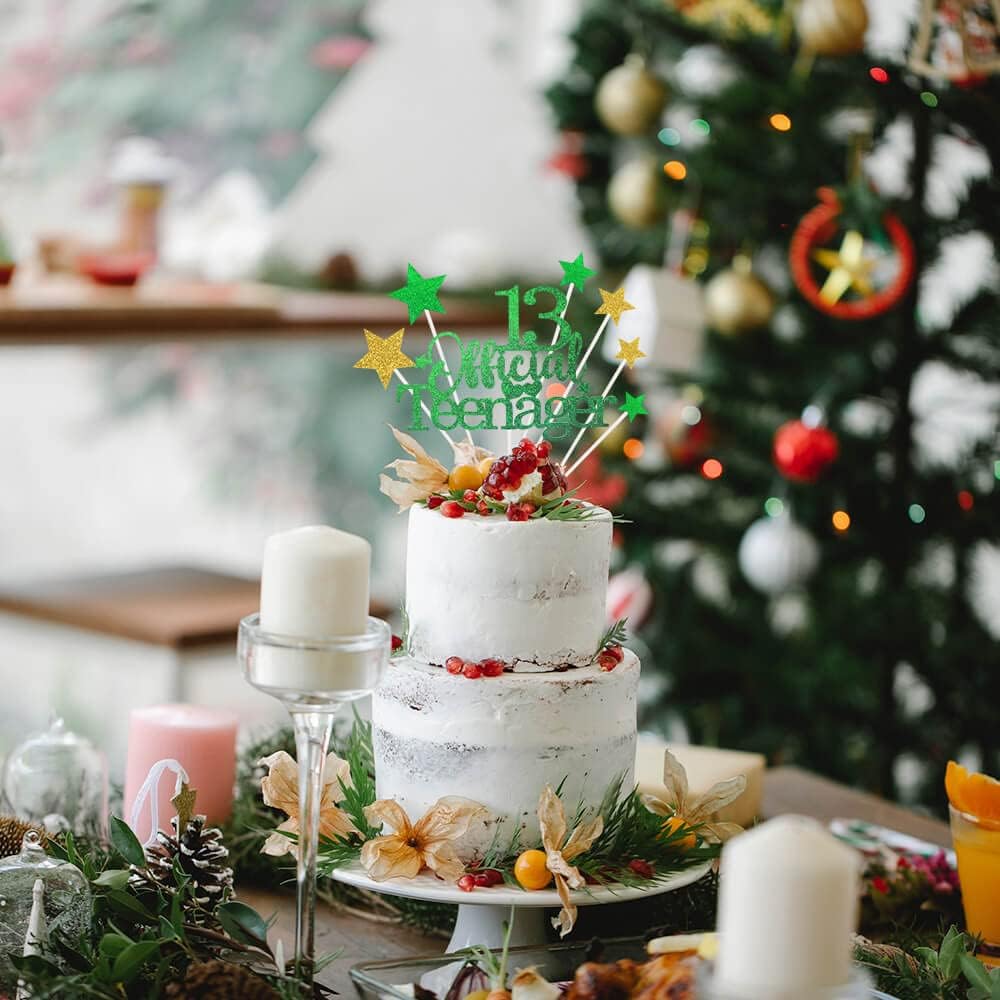 Glittery 13 Ofiicial Teenager Cake Topper with Star,13th Happy Birthday Cake Topper Party Decorations Party Supplies for Boys Girls Green Gold