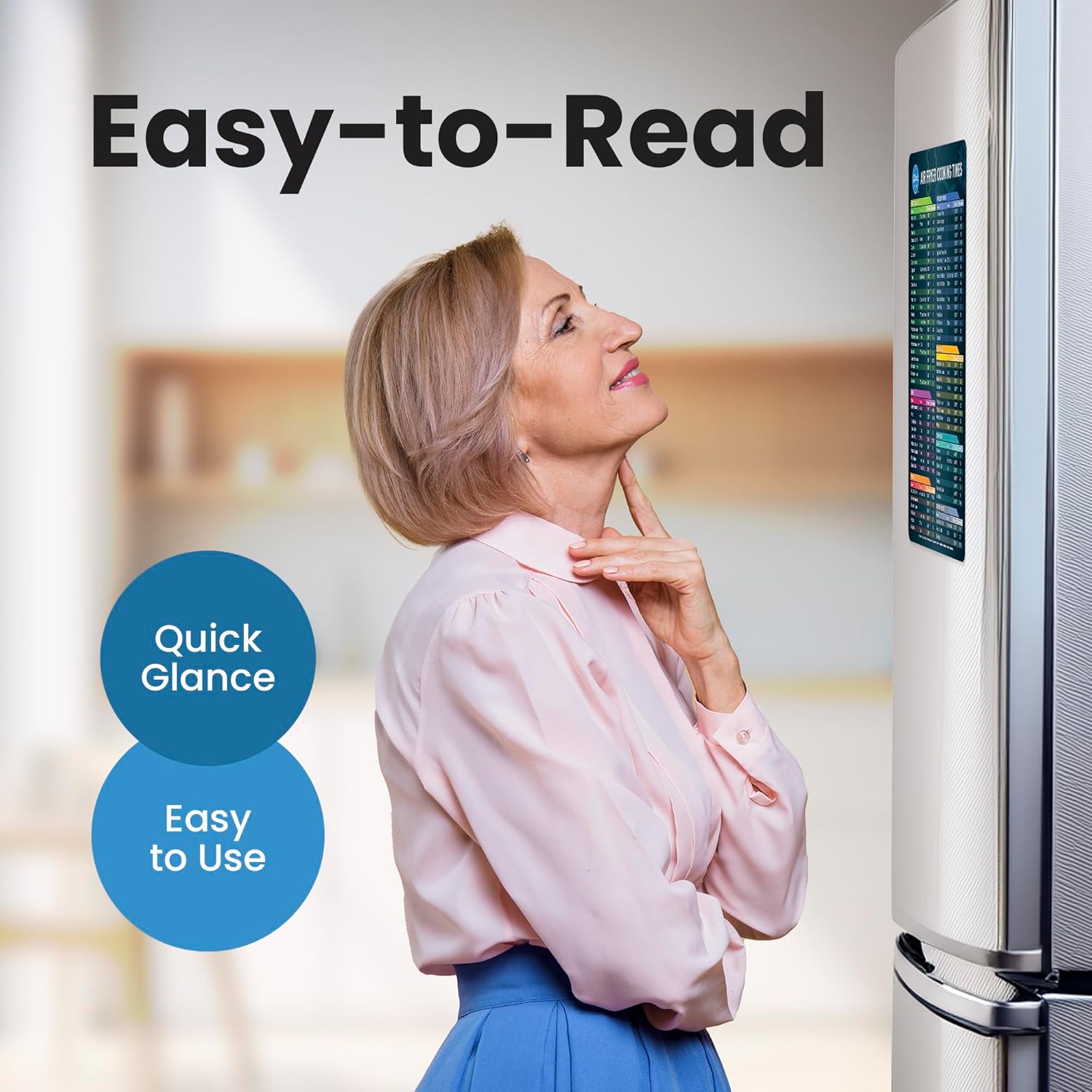 - JUST STICK IT: The air fryer cooking times chart sheets feature a magnetic backing that allows you to easily stick them to your fridge or any other magnetic surface in your kitchen. Don’t have a magnetic surface? Use the included double-sided heat resistance tape to stick onto your appliances.
