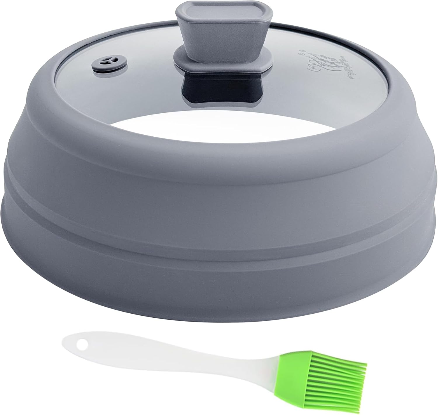 Microwave Splatter Cover Glass Microwave Cover for Food Collapsible Splatter Guard Lid with Silicone Handle for Pot Plate Bowl 9 Inch Grey
