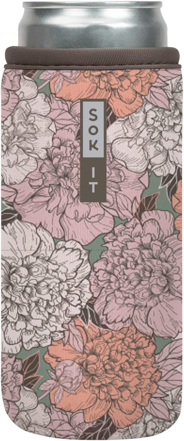 Sok It CanSok Sleeve for Beer & Soda Insulated Neoprene Cover (Carnations, 12oz Slim Can Sleeve)