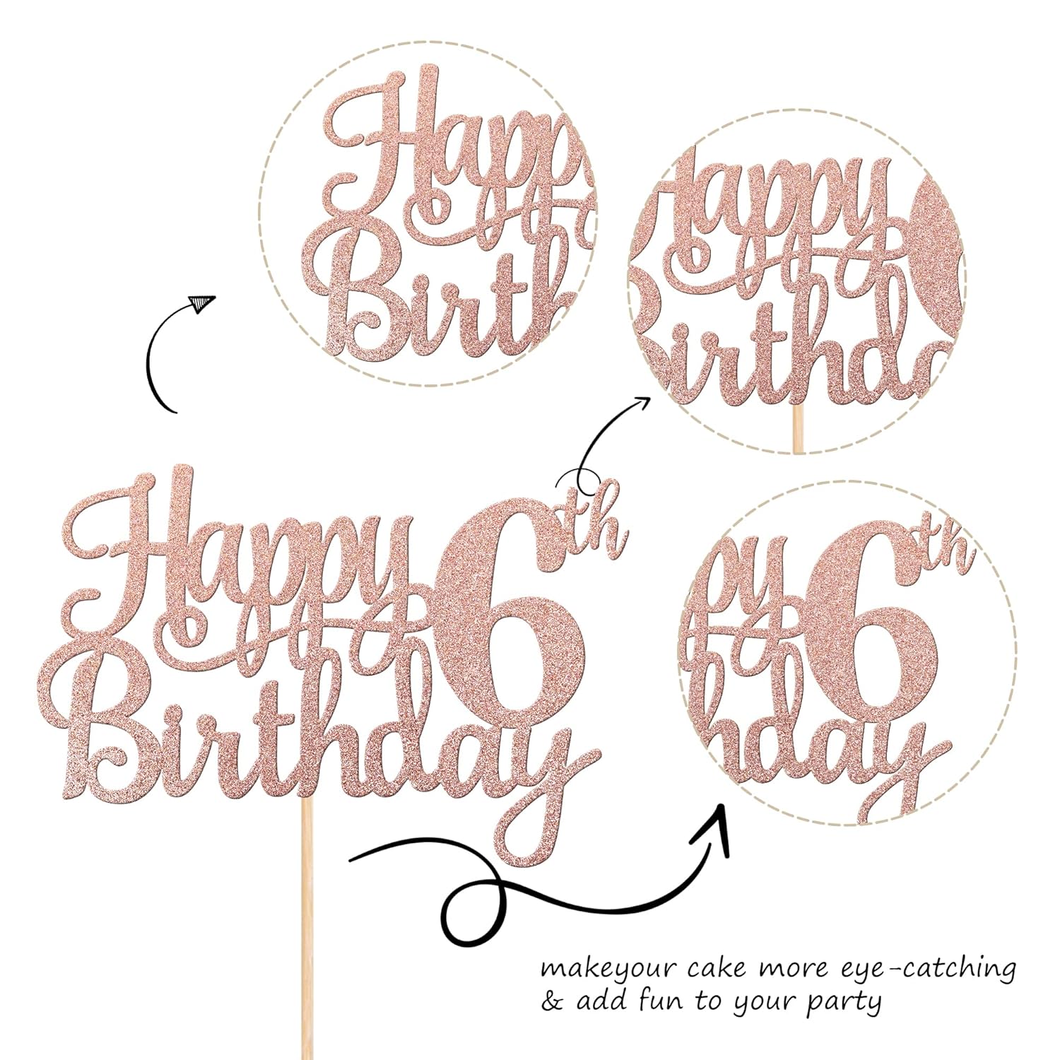 - Wide Usages ! The cake topper is perfect for happy 6th birthday theme party, cheers to 6 years birthday theme party cake decorations, they can make your cake more attractive and bring the fun to your party.You can also apply them for ice cream, fruits, cookies and other desserts.