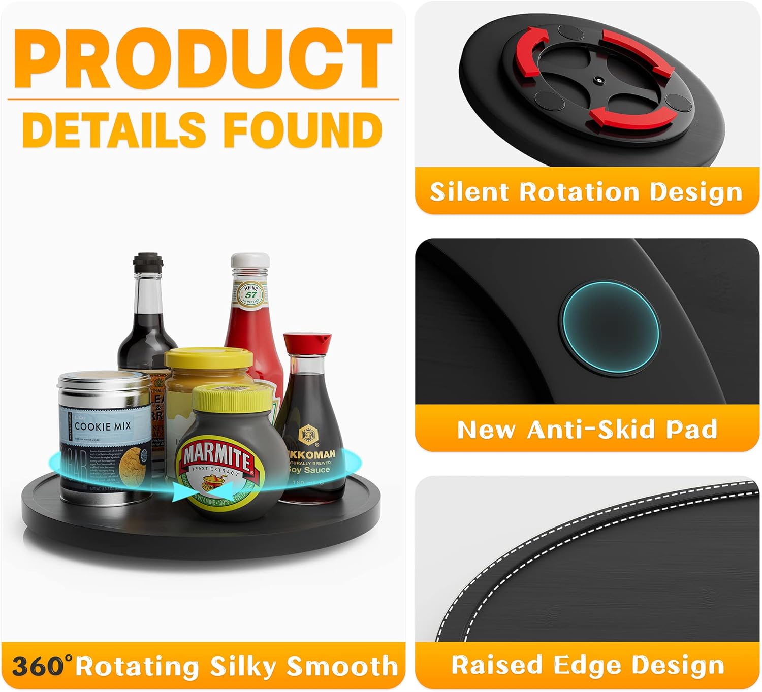 Lazy Susan Organizer Homerays 9 Inch Non-Skid Bamboo Lazy Susan for Kitchen Rotating Spice Rack for Kitchen Cabinet, Wood Turntable for Kitchen Countertop Organizer Black