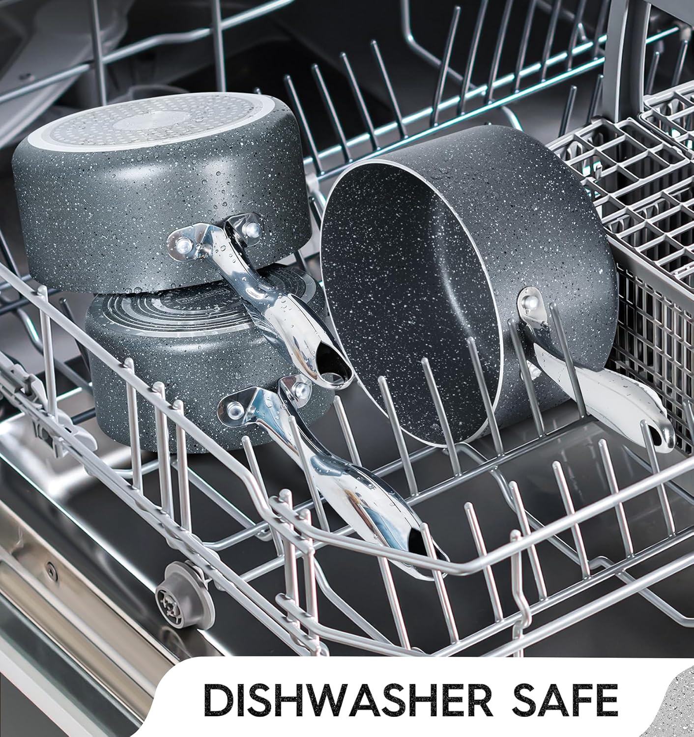 - ULTRA NONSTICK - The granite coating on this sauce pan set prevents food from sticking, making it easy to clean and ensuring that your food comes out perfectly cooked every time.