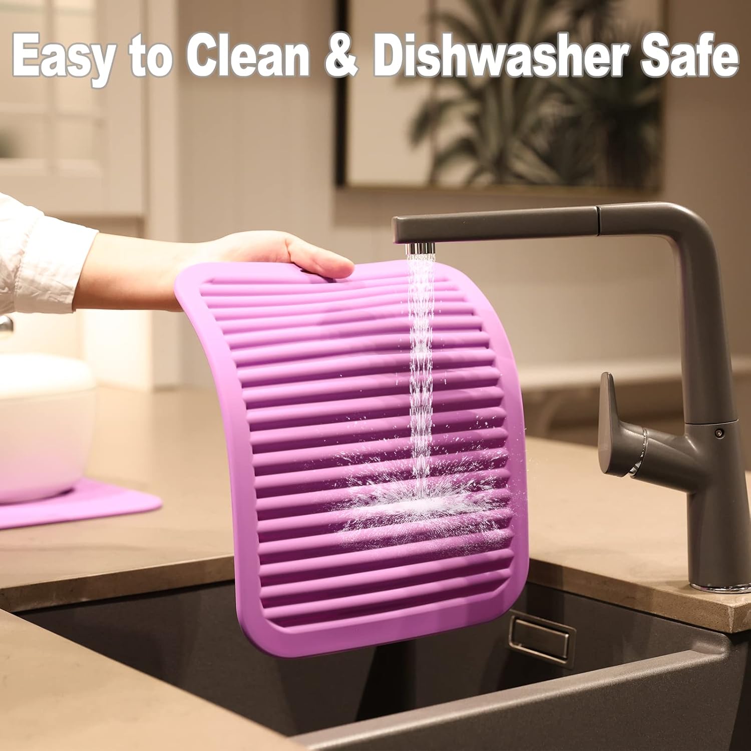 - EASY TO CLEAN & DISHWASHER SAFE - These trivets for quartz countertops are waterproof, plus stain and odor resistant. These kitchen hot pads are safe to pop in the dishwasher. It is non-stick and easy to clean. Roll up or hang on hook, save space. Experience a more convenient kitchen environment with these silicone trivet.