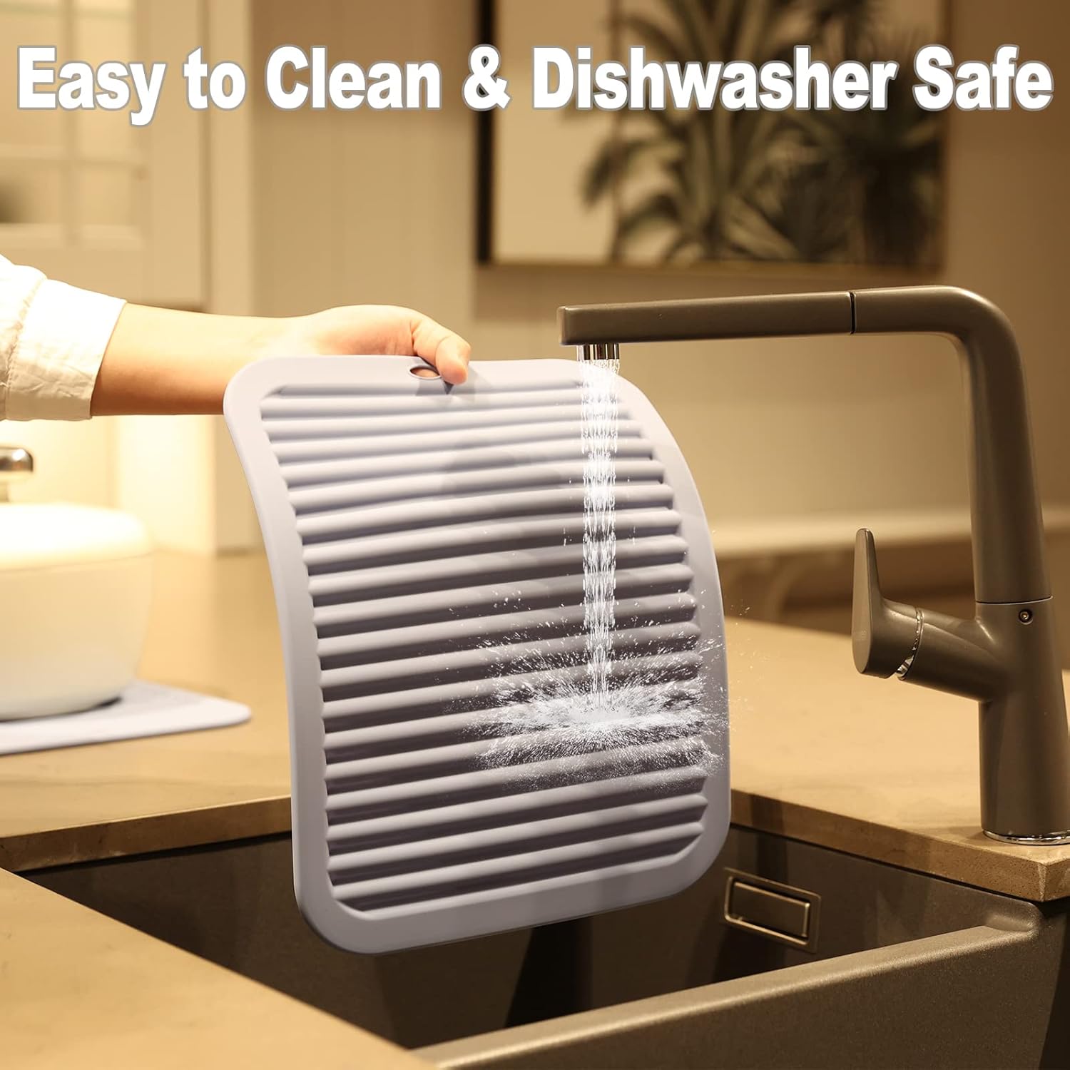 - EASY TO CLEAN & DISHWASHER SAFE - These trivets for quartz countertops are waterproof, plus stain and odor resistant. These kitchen hot pads are safe to pop in the dishwasher. It is non-stick and easy to clean. Roll up or hang on hook, save space. Experience a more convenient kitchen environment with these silicone trivet.