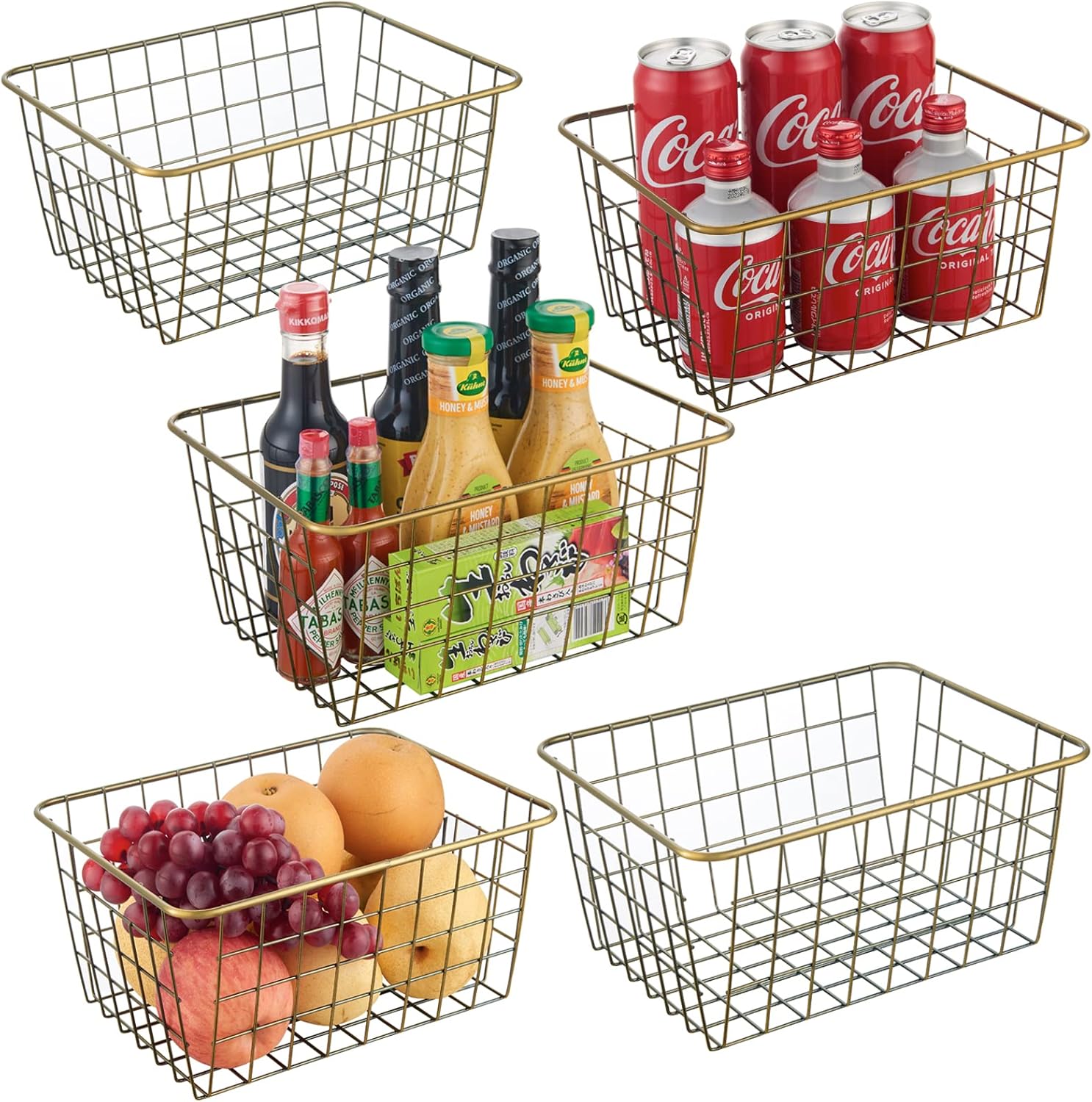 Wire Kitchen Storage Basket 5 Packs,Perfect Pantry Organization Accessories Baskets,Laundry Basket,Countertop Organization,Suitable for Kitchen,bathroom,bedroom,Tabletop,Stackable,Bronze