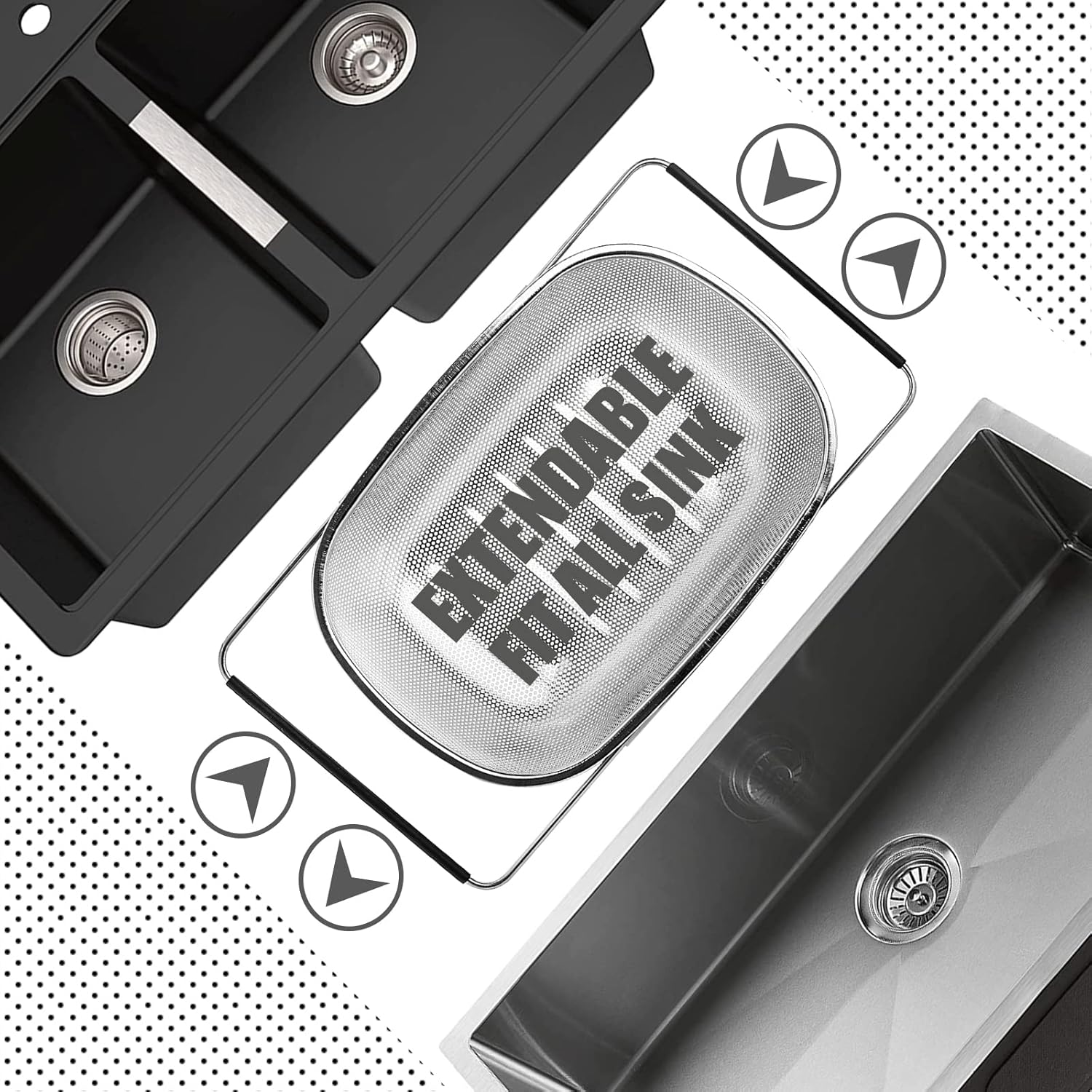 - Versatile Design: Our over-the-sink colander with a 14" by 9" basket is designed to fit most sink sizes and features expandable rubber grip handles that can extend from 15" out to 20", which allows for comfortable use, making it the perfect addition to any kitchen.