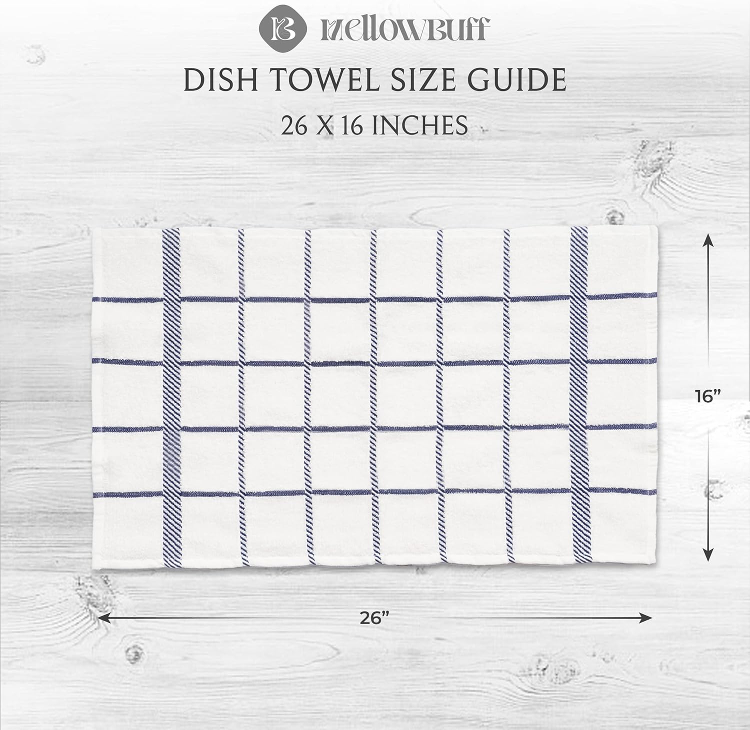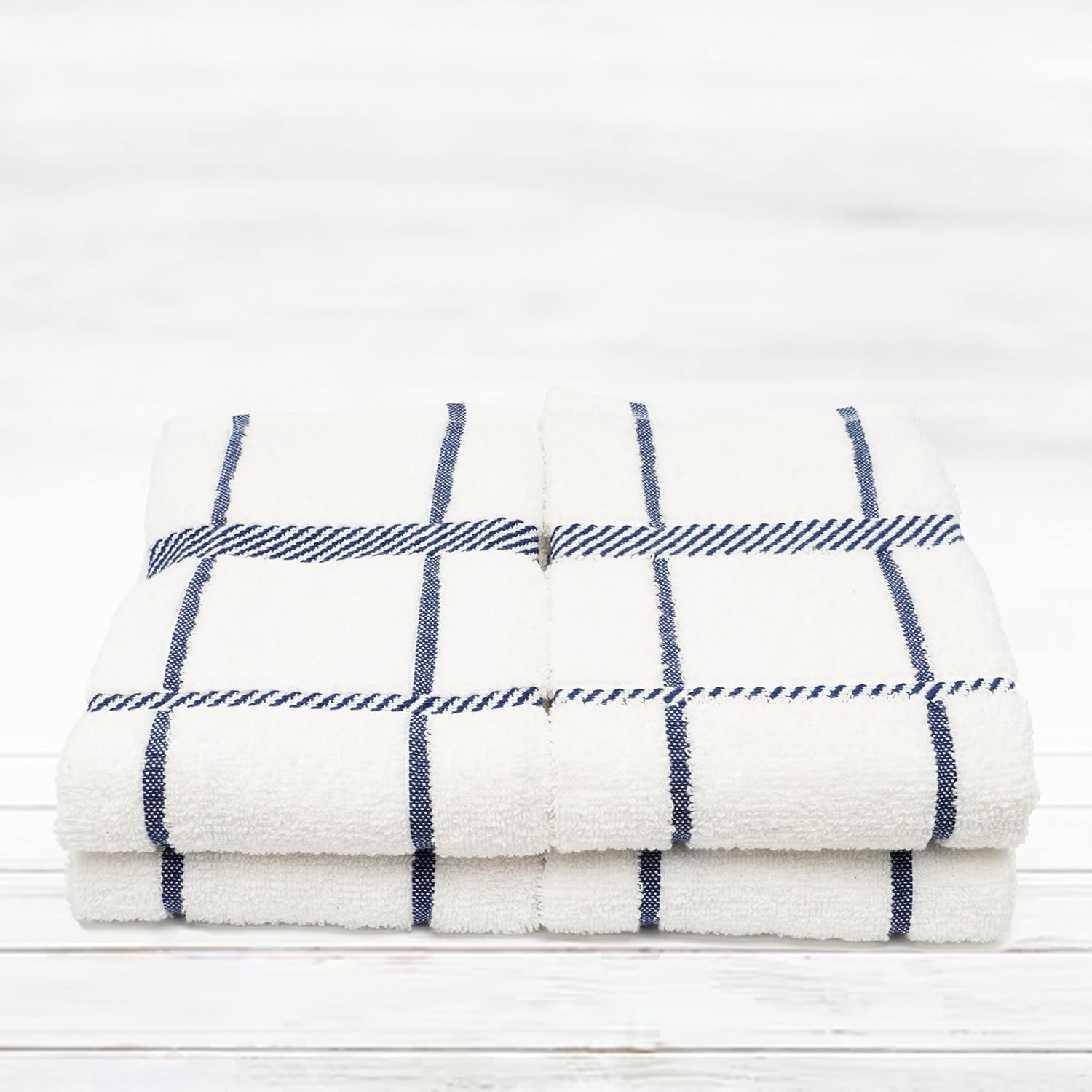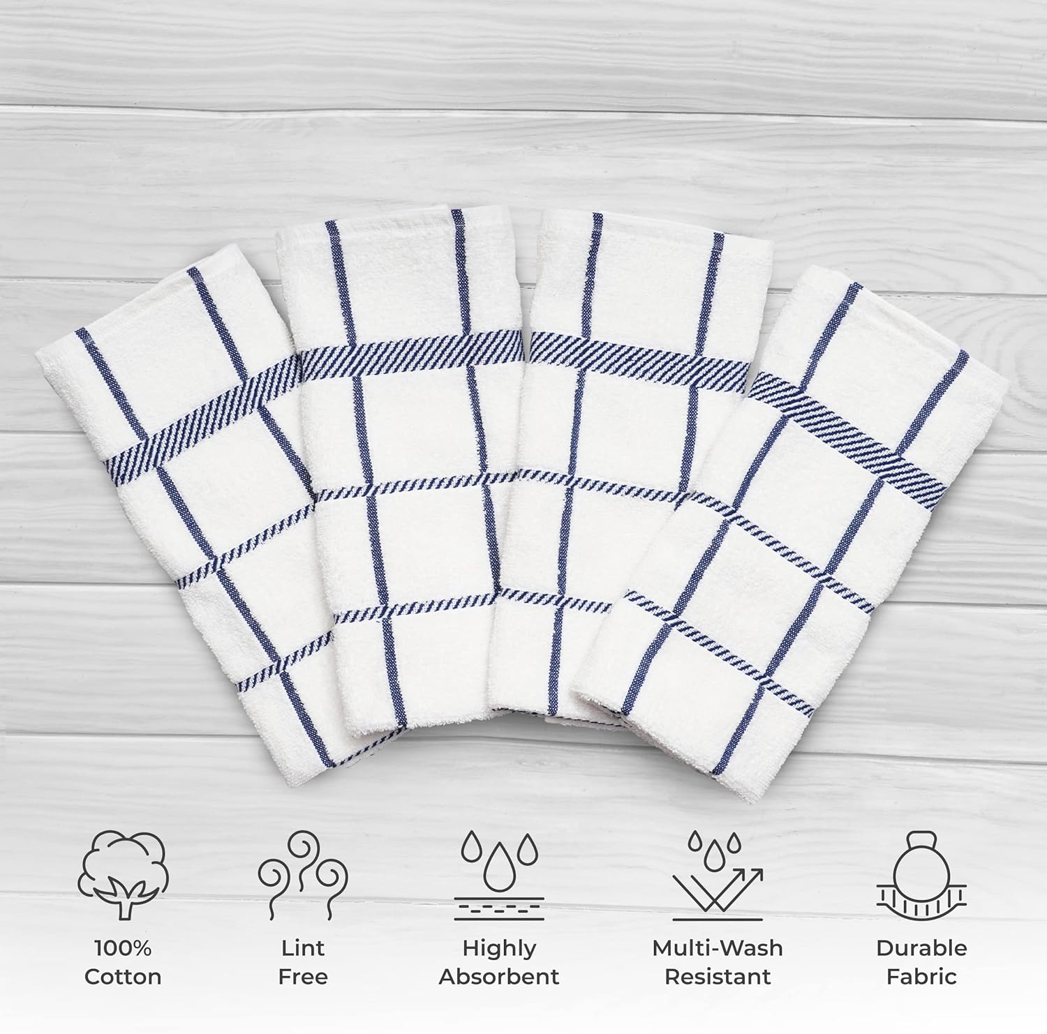 100% Cotton Terry Dish Towels, 4 Pack Checks, 16 x26 Inches, Super Soft and Absorbent Kitchen Towels, Perfect for Kitchen Cleaning and Dish Washing | Navy Blue
