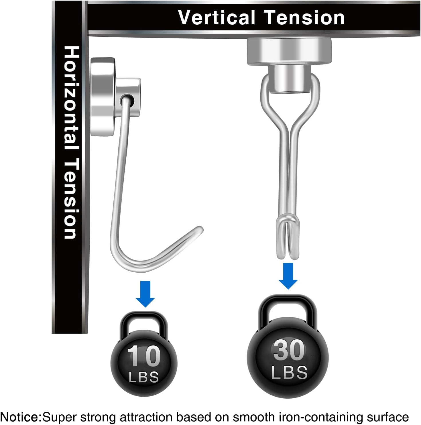 - 【 High Quality 】 The rotating swing magnetic hook heavy duty has a pulling force of 30 pounds and is based on horizontal applications - reducing by 2/3 if used vertically. The magnetic hook features a heavy and stable magnetic surface, with strong magnetism lasting forever!