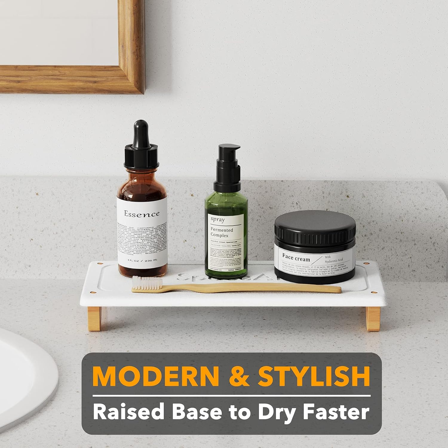 SpaceAid DryingNeat Sink Organizer, Instant Dry Sink Caddy Organizers, Kitchen Sponge Soap Holder Dispenser, Countertop Fast Drying Rack (Bamboo Feet, White)