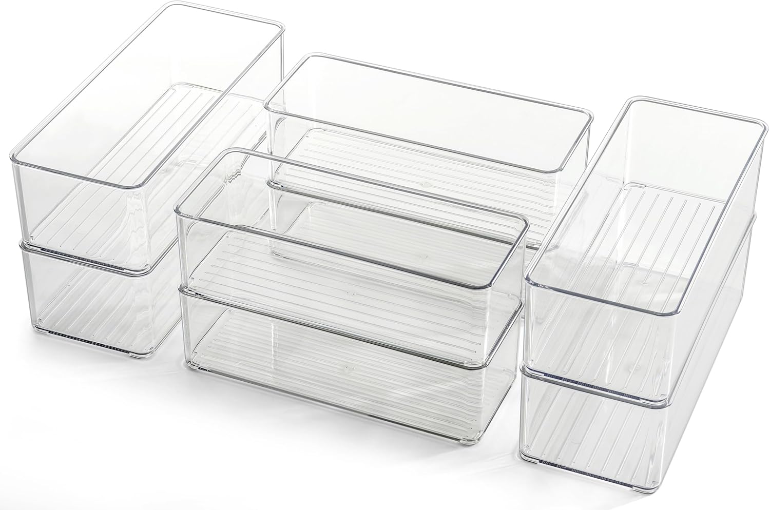Hudgan 8 Pack Clear Plastic Drawer Organizers Set, Stackable Deep Drawer Organizer for Makeup Vanity and Desk, 2 Sizes Tall Bathroom Drawer Organizer