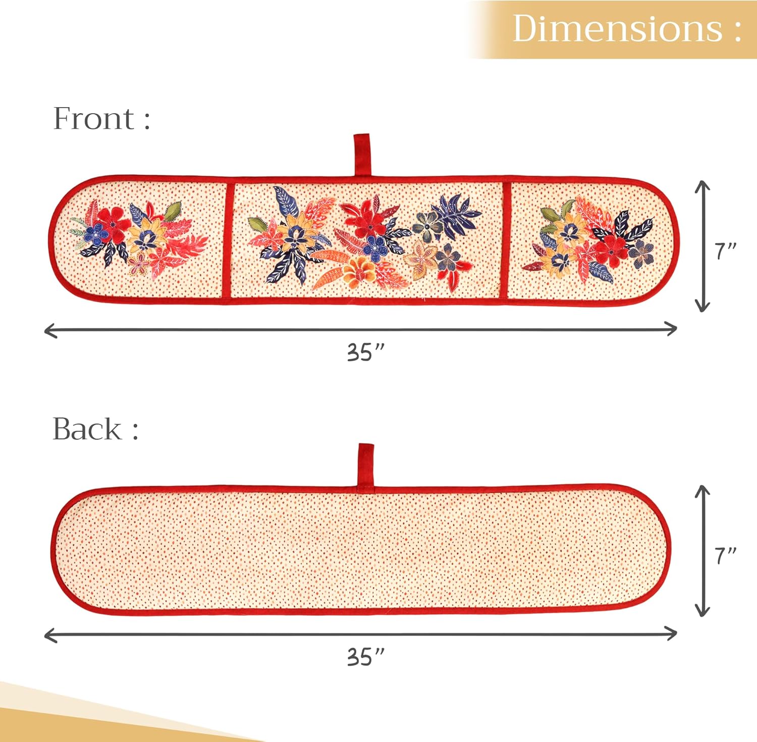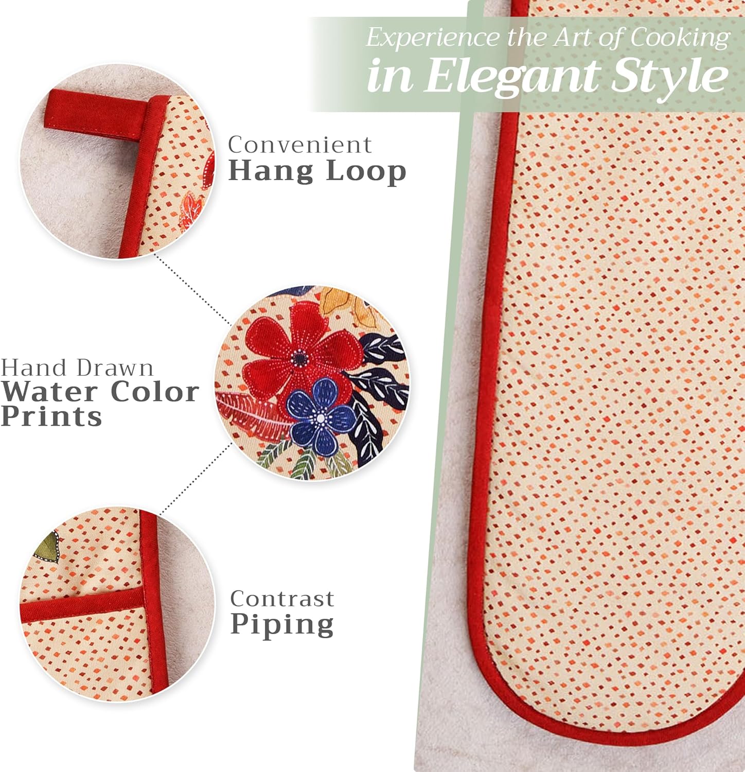 - Package includes: Includes 1 double oven mitt sized 7"x35". Perfect for handling hot cookware safely while adding a touch of European elegance to your kitchen. Designed in Europe and made in India with care