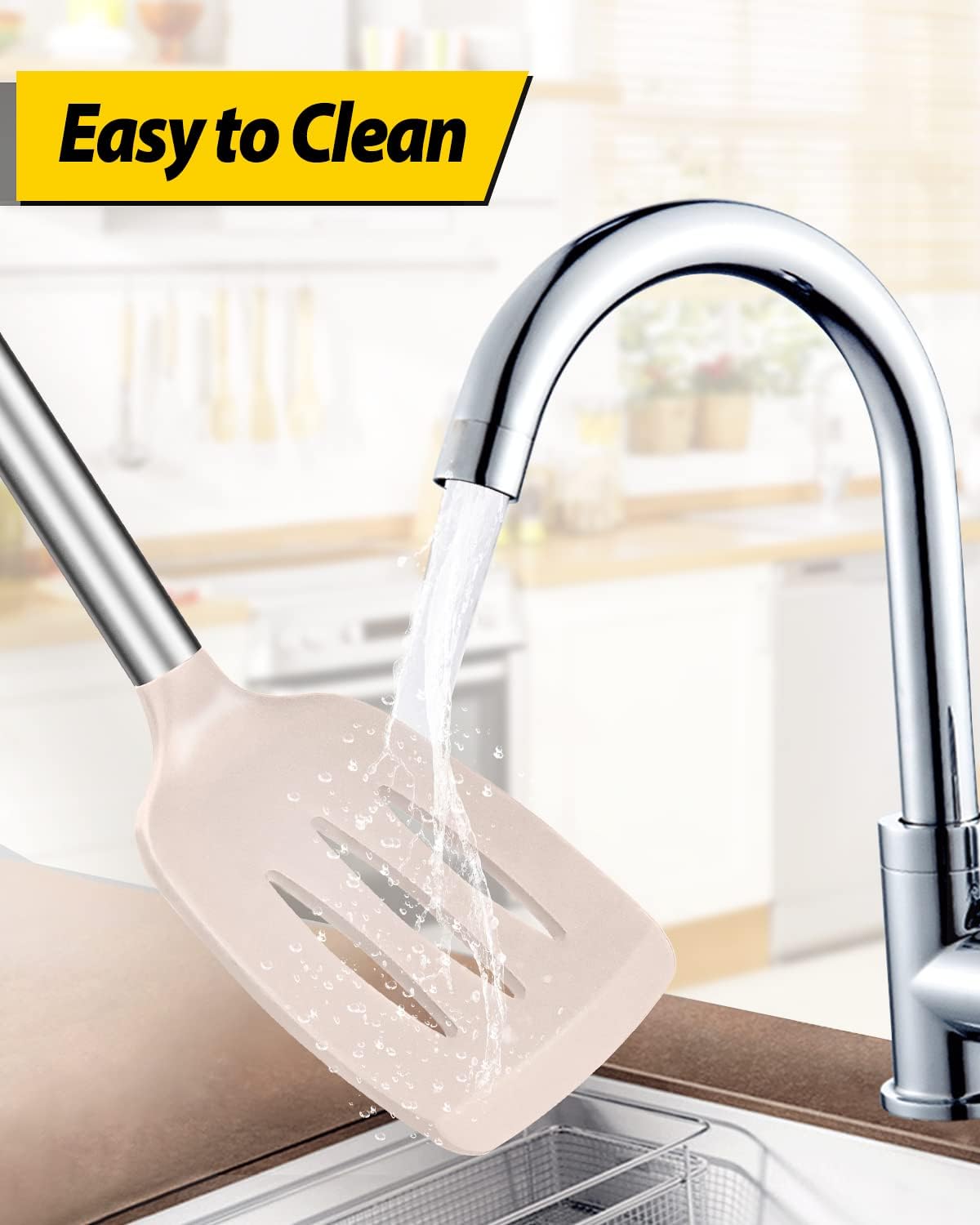 - Thoughtful Design : The good-quality 18/8 stainless steel keeps you away from the trouble of kitchen utensils rusting or breaking; This anti-scald silicone handle is not easy to conduct heat and is more comfortable to hold than traditional utensils