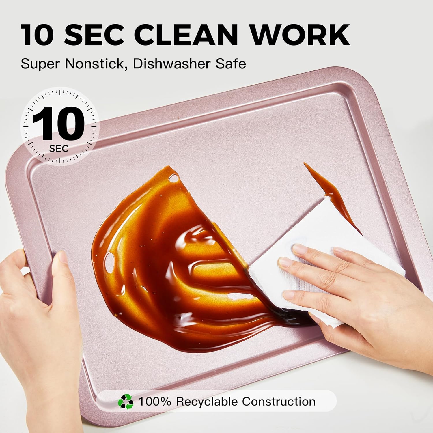 - EXQUISITE CRAFT - The cookie sheets for baking nonstick set is made of carbon steel, which is sturdy and durable. Compared with glass or ceramic sheet pan, it is unbreakable. Compared with aluminum, it is more healthy. One-piece seamless design with no dead ends and rounded corners for greater safety, Smooth curved edges prevent finger injuries
