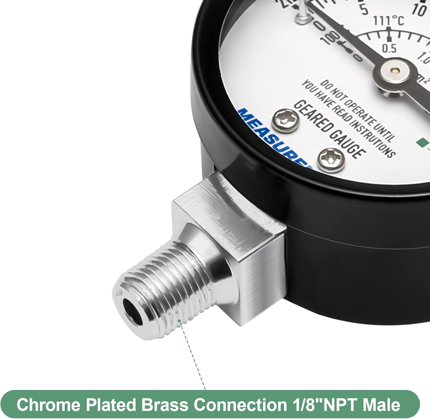 MEASUREMAN Black Steel Pressure Cooker Gauge, Pressure Canner Gauge, Steam Pressure Gauge, 2" Dial, Lower Mount, Including Hexagon Gasket and Nut