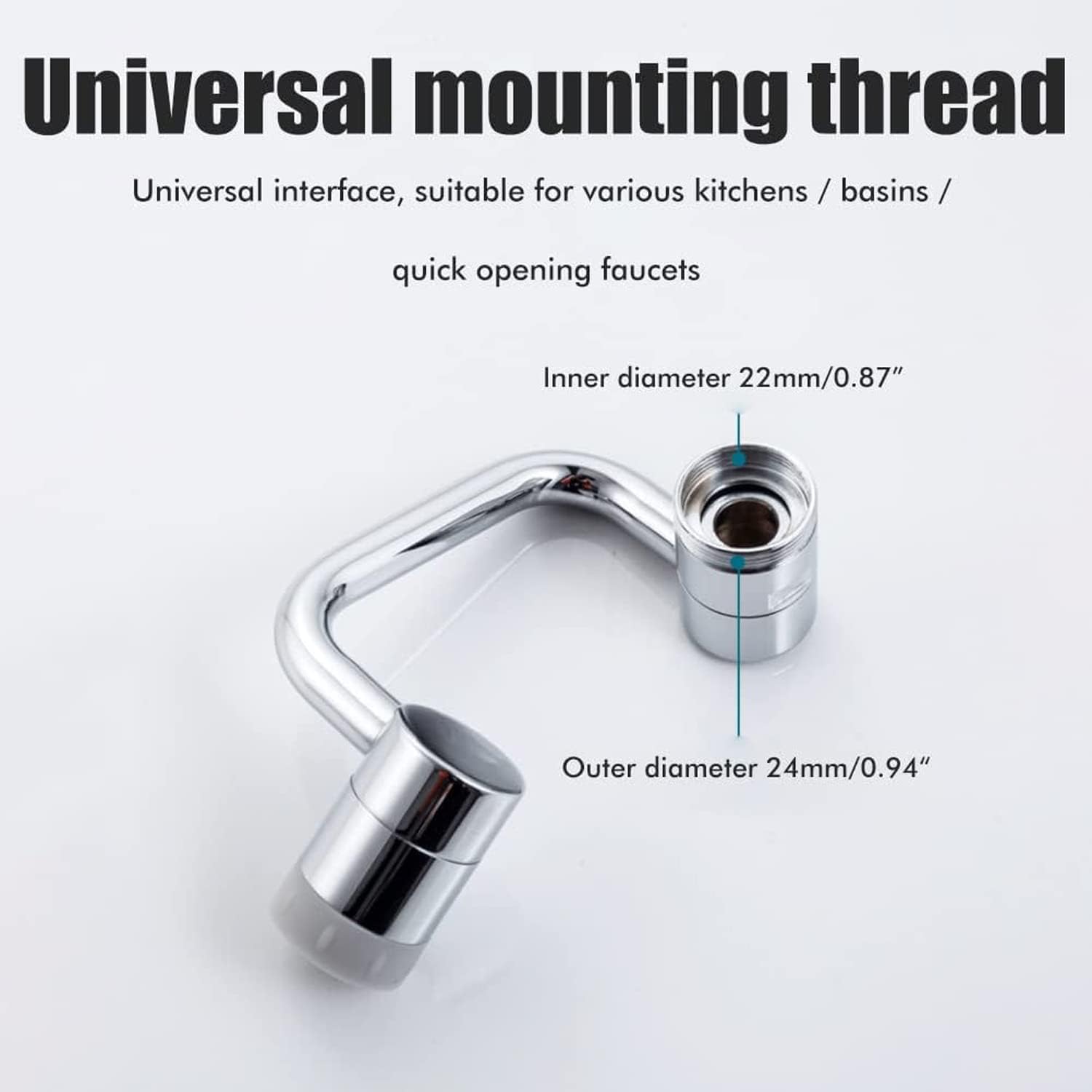 - 【Wide Applications】--The universal faucet aerator extender can be used on the faucets with inner thread diameter 22mm or outer thread diameter 24mm in bathroom, kitchen, sink faucets, taps Lavatory faucets.