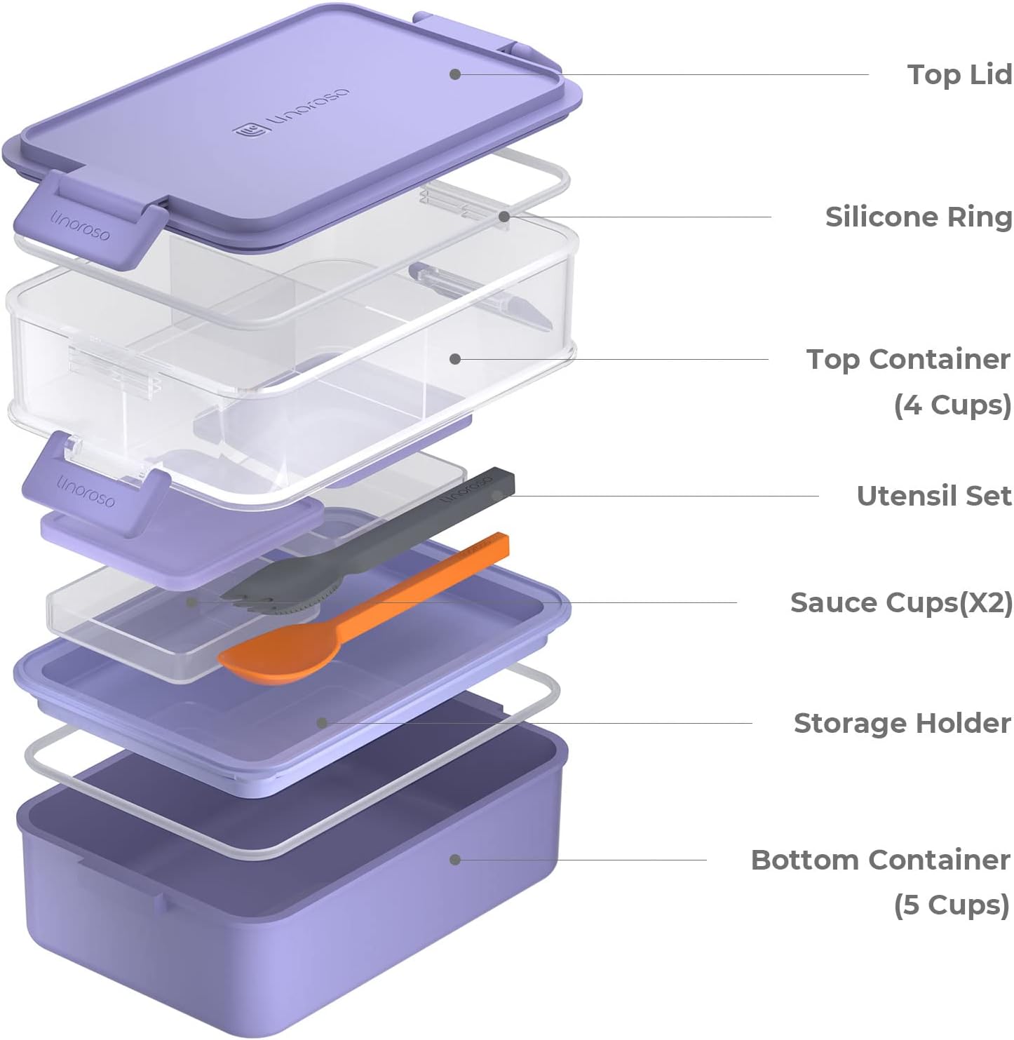 linoroso Stackable Bento Box Adult Lunch Box | Meet All You On-the-Go Needs for Food, Salad and Snack Box, Premium Bento Lunch Box for Adults Include Utensil Set, Dressing Containers - Veri Peri