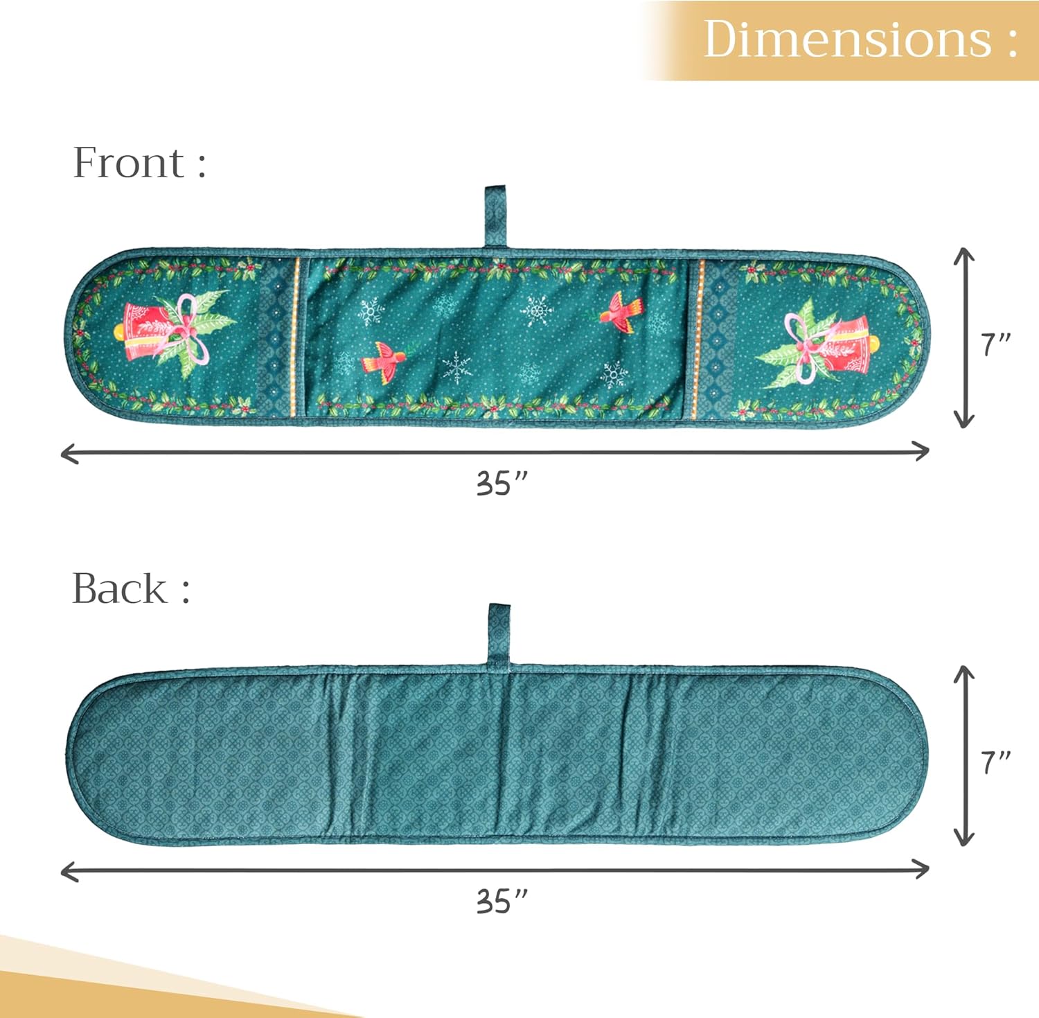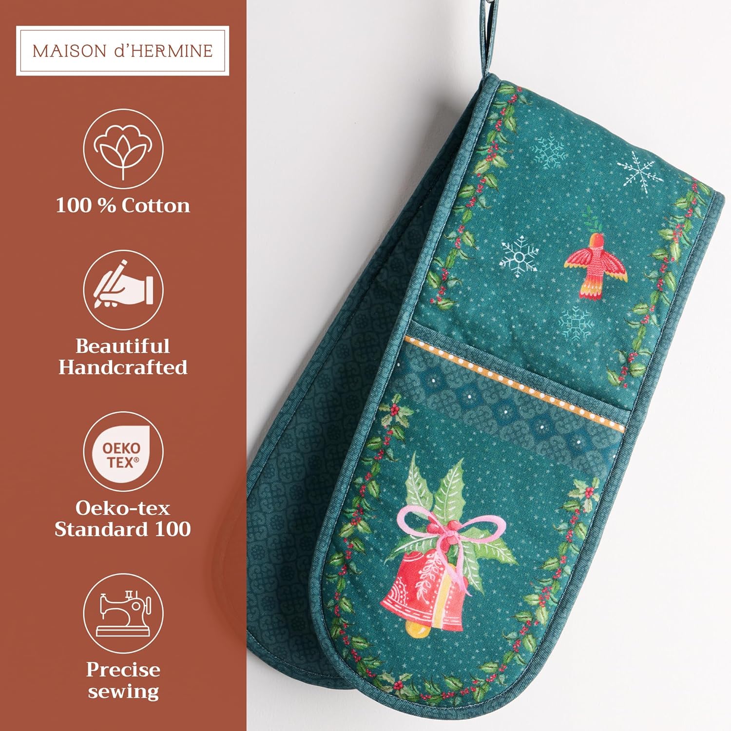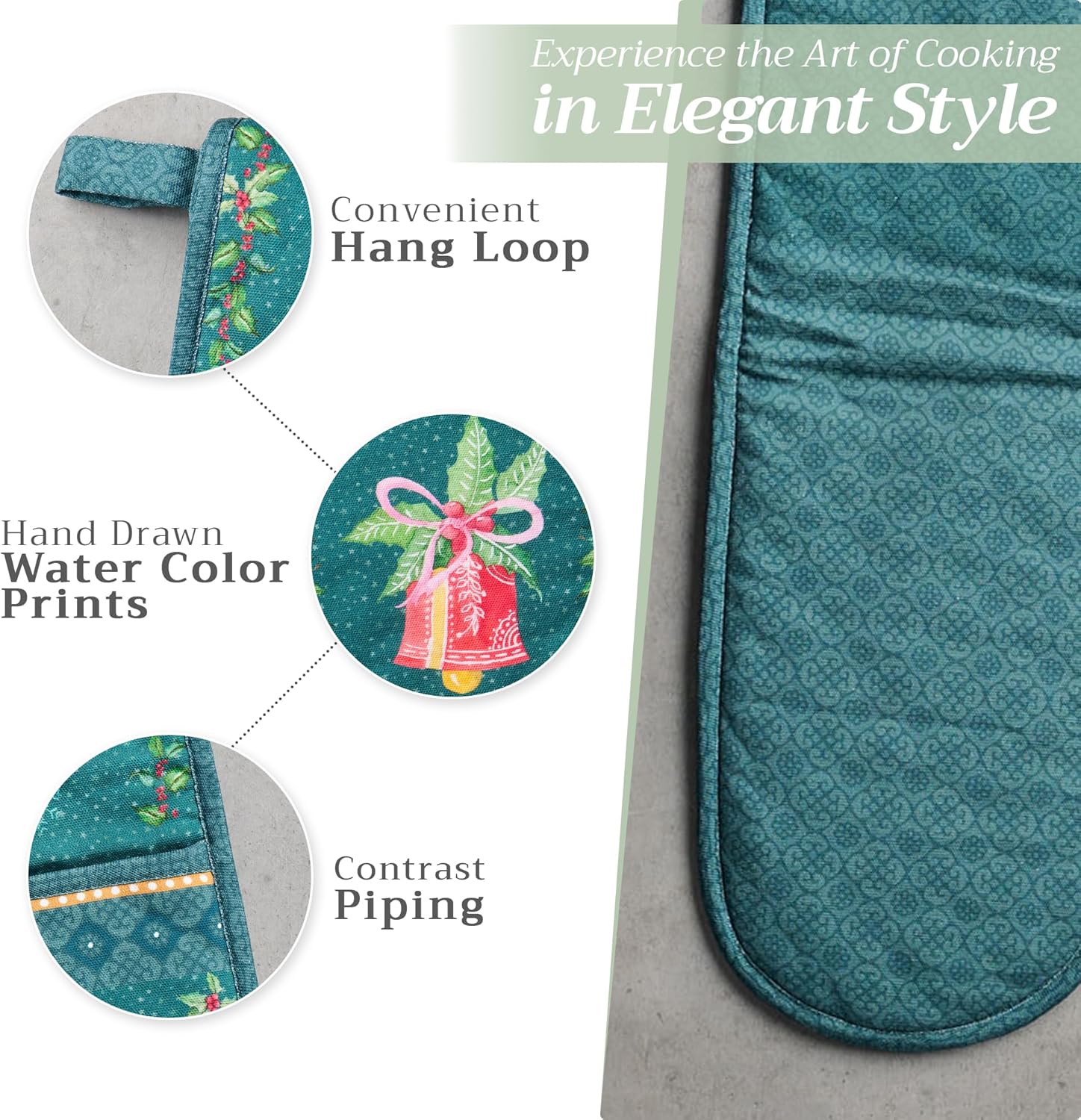 - Package includes: Includes 1 double oven mitt sized 7"x35". Perfect for handling hot cookware safely while adding a touch of European elegance to your kitchen. Designed in Europe and made in India with care